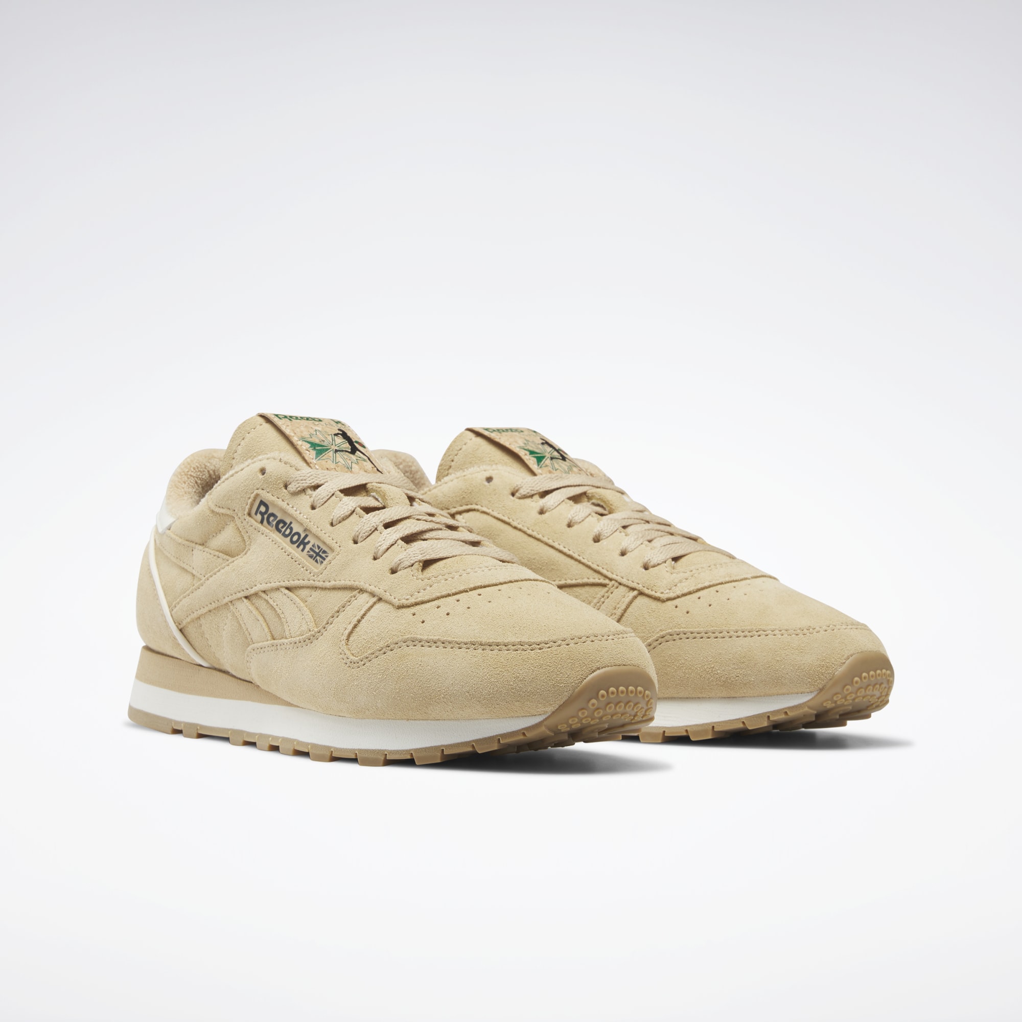These Reebok Classic Leather 1983 Vintage Shoes in Sahara/Glen Green/Rubber Gum are inspired by a night of darts with friends at the local pub.