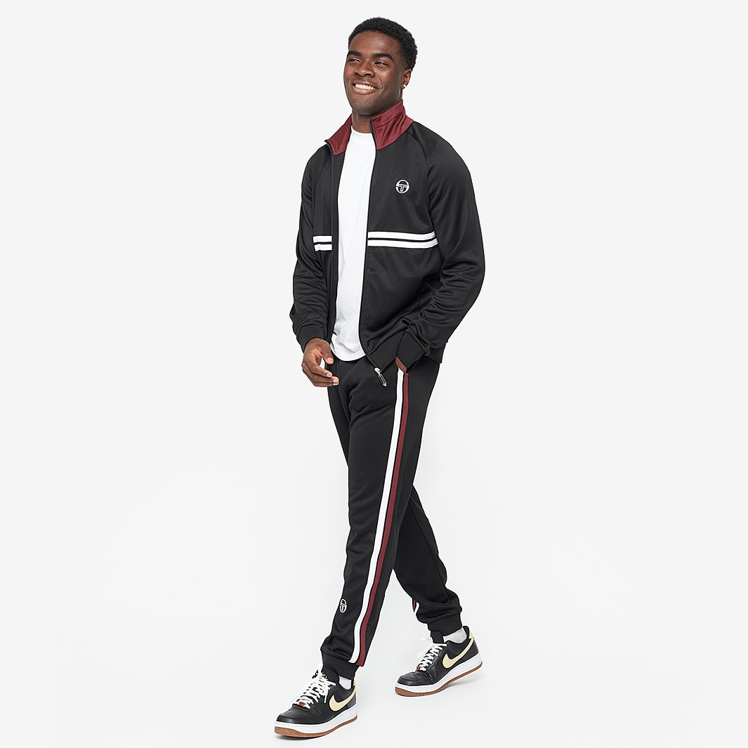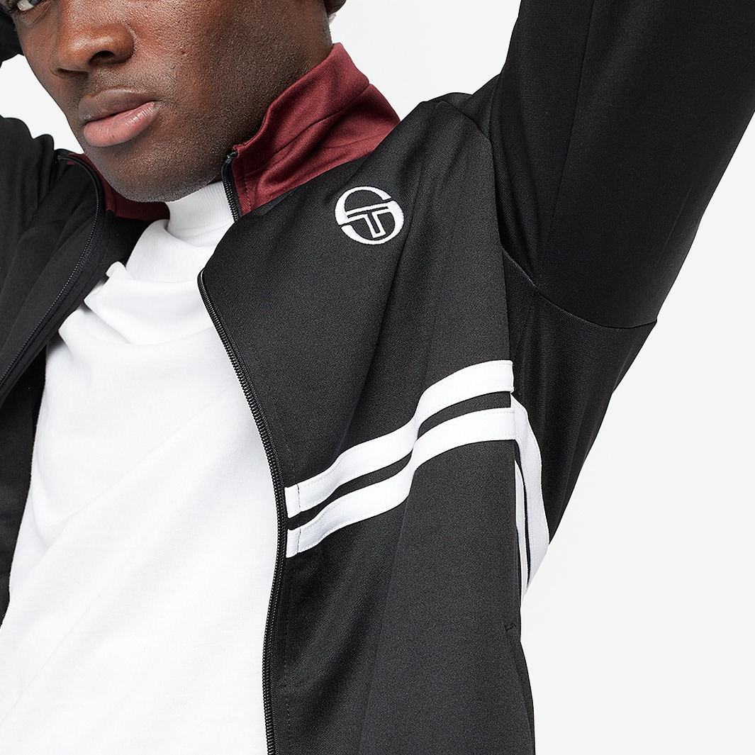 The Sergio Tacchini Archivio Dallas Tracktop in Black, Port and White showcases one of ST’s most iconic designs, a favourite look of the 80’s casual crowd with contrast details and clean design for style and flexibility wherever you are.