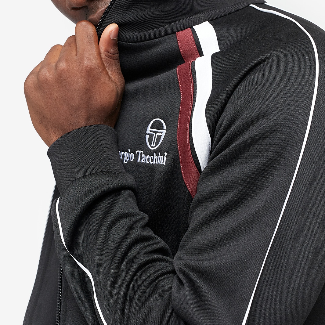 The Sergio Tacchini Archivio Ghibli Tracktop in Black, Port and White showcases one of ST’s most iconic designs, most known as the top worn by John McEnroe during the Davis Cup in the 1980’s. Classic lines and dropped shoulders frame the full zip in contrast colour, showing off tennis heritage looks.