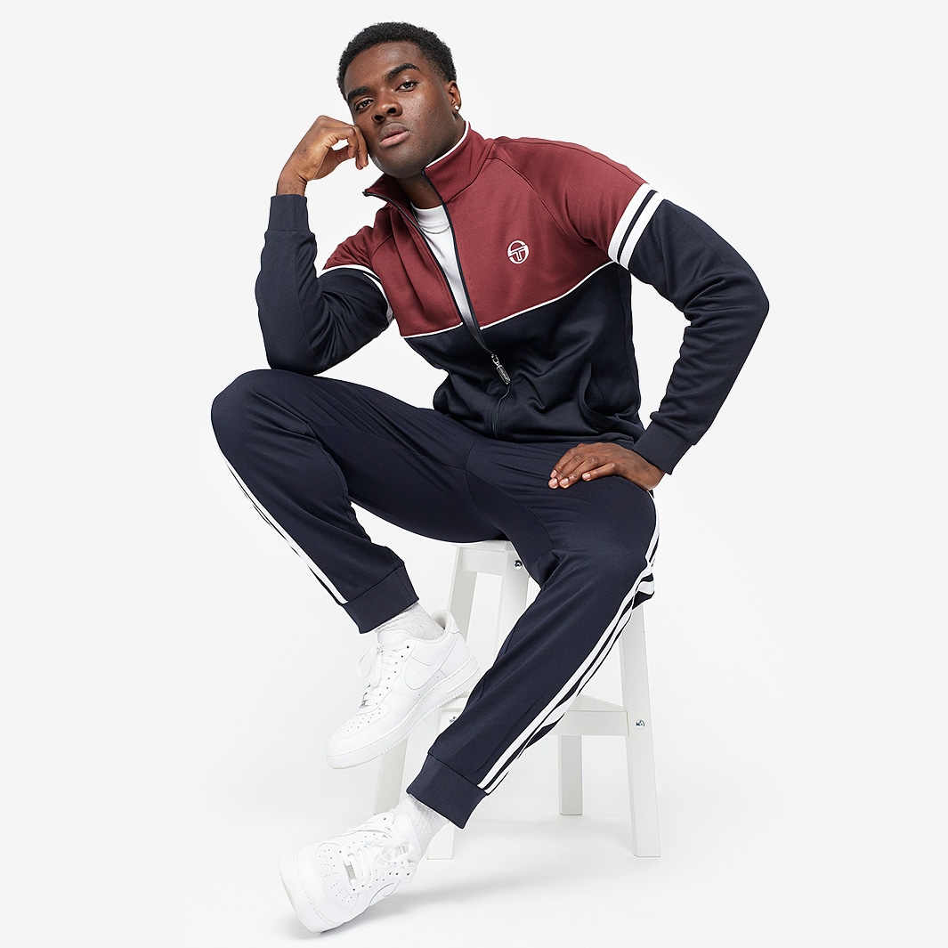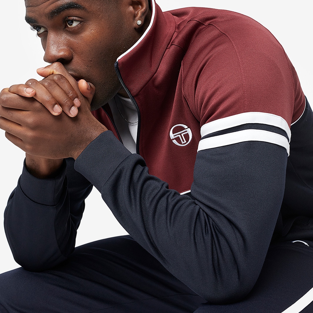 The Sergio Tacchini Archivio Orion Tracktop in Port, Navy and White showcases one of ST’s most iconic designs, a favourite look of the 80’s casual crowd with contrast piping and clean dropped shoulders for style and flexibility wherever you are.