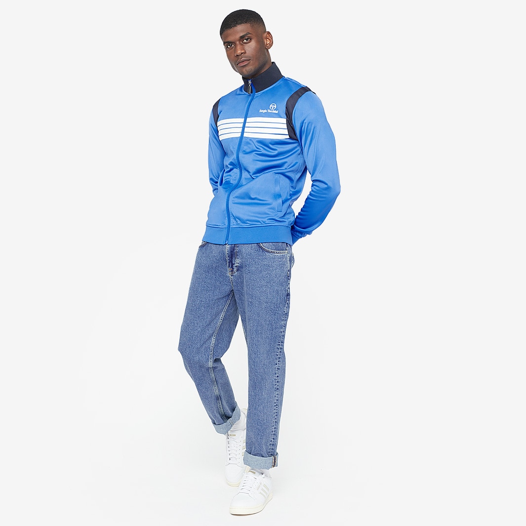 Take your game to the next level with the Sergio Tacchini Archivio Orlando Track Top in Palace Blue/Night Sky/White, the top sporting contrasting chest stripes that bring unique flair to your look.