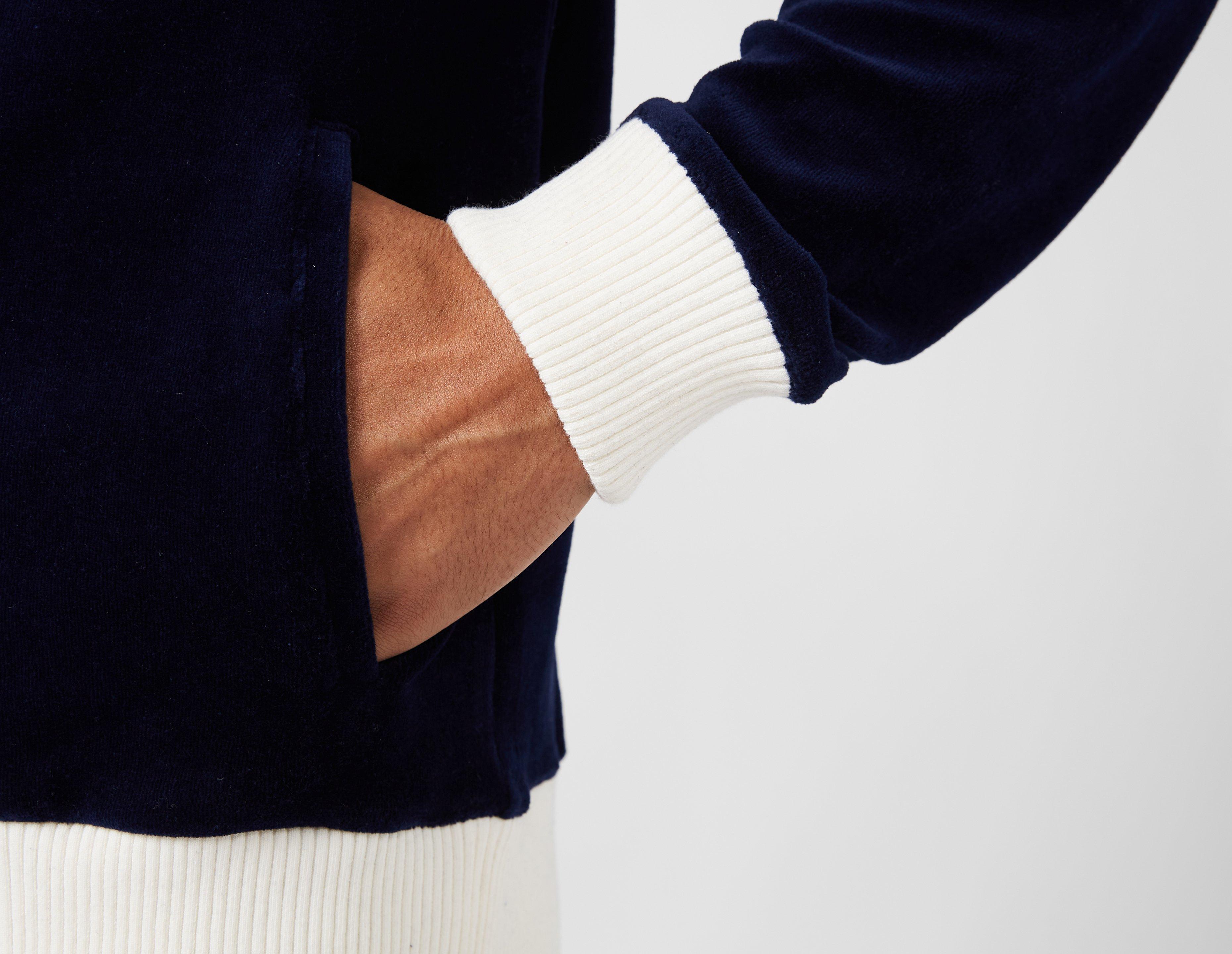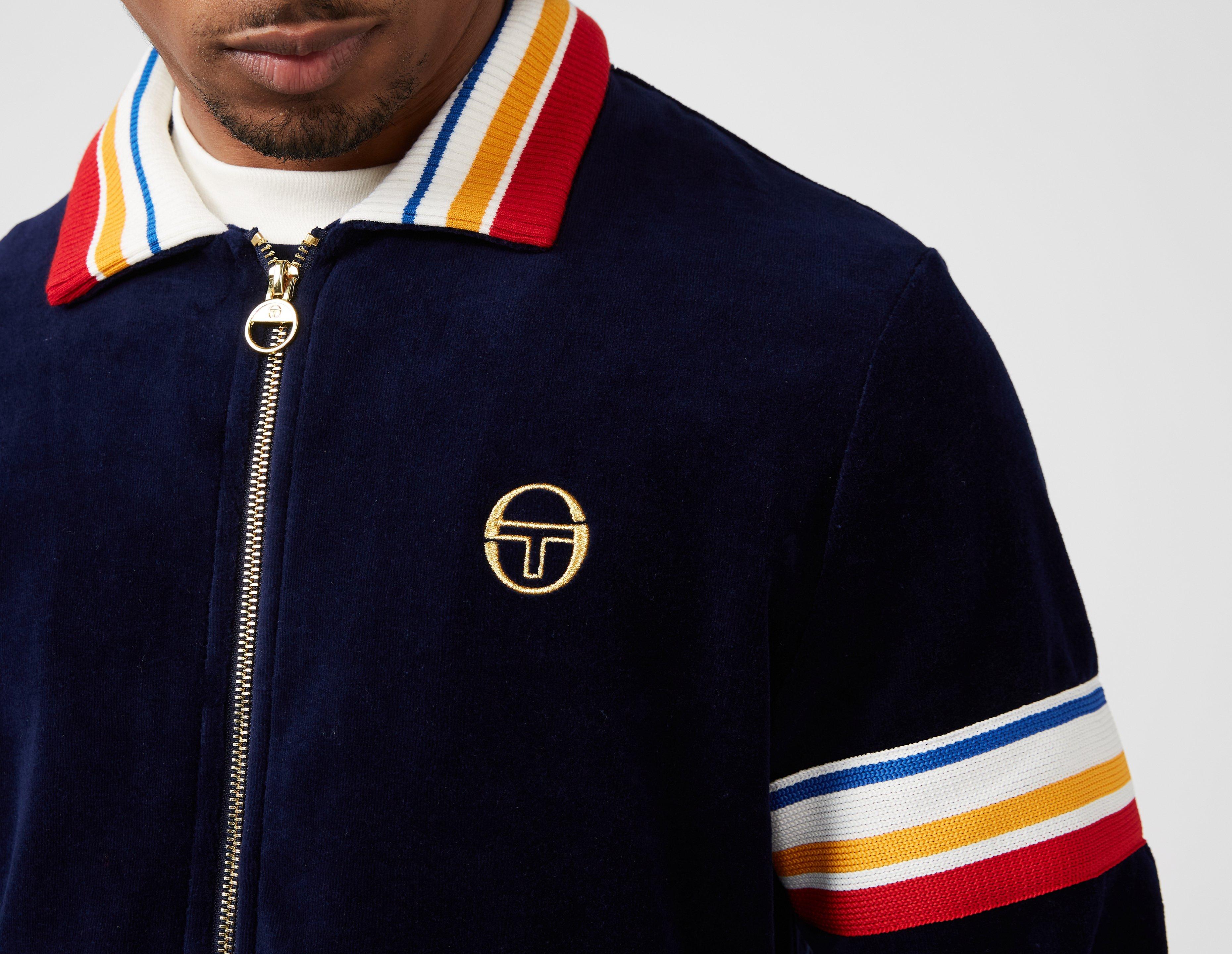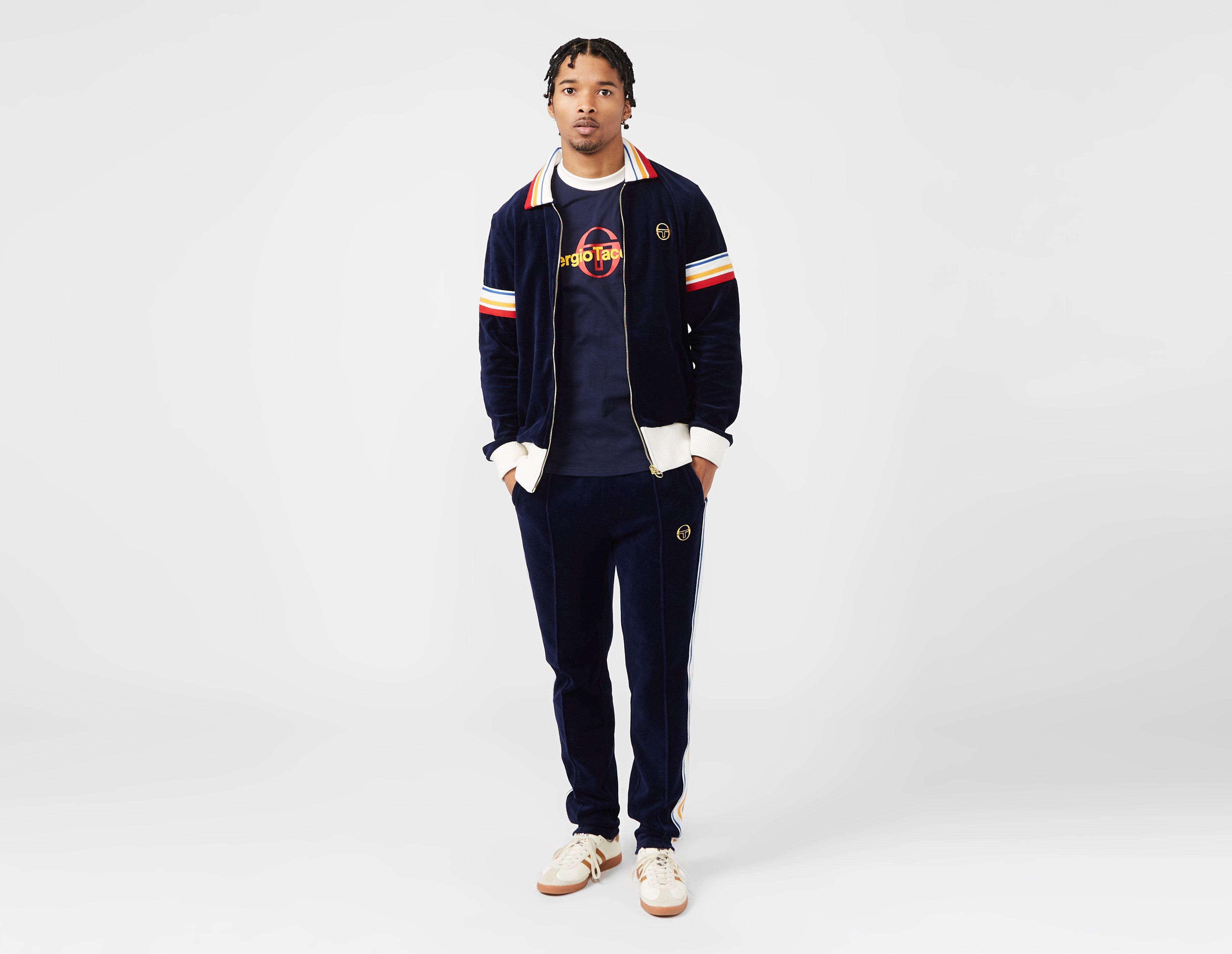 The Sergio Tacchini Goran Track Top in Maritime Blue is made from premium velour, providing a luxurious feel.