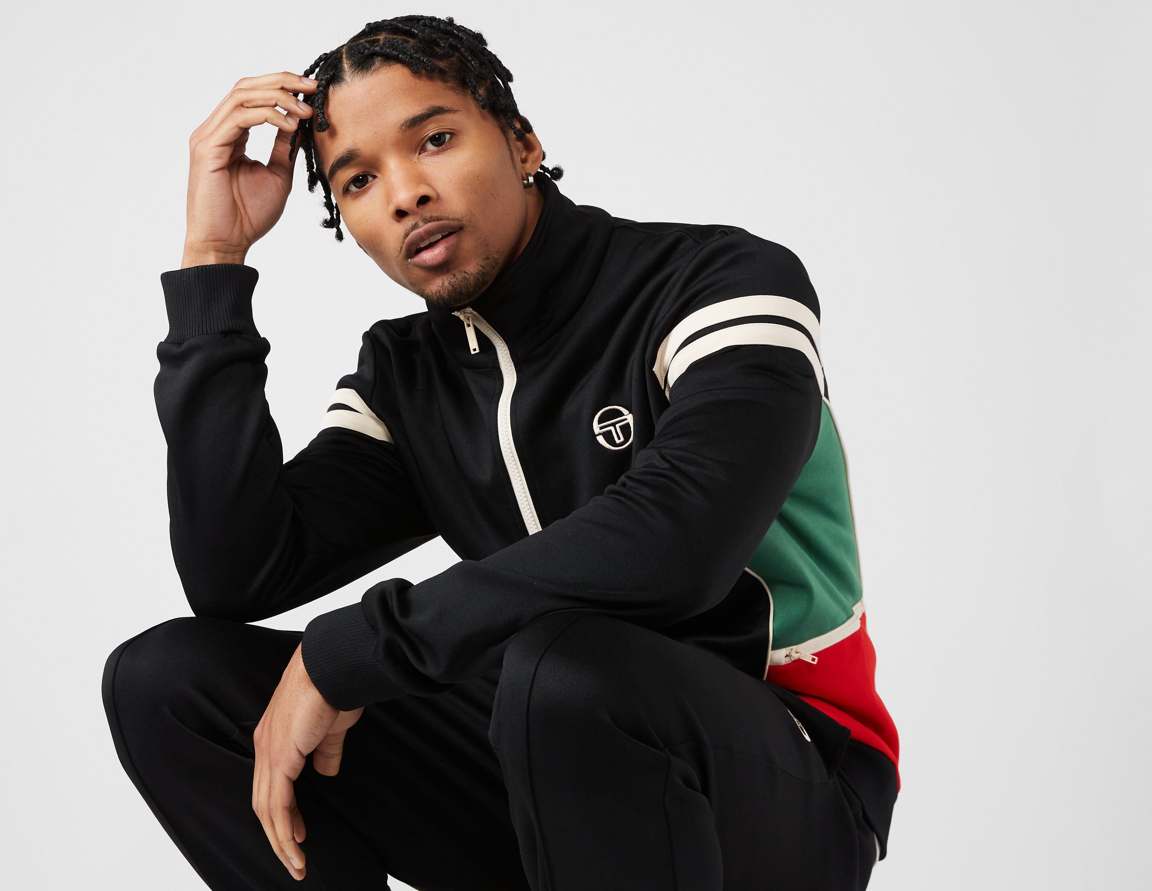 The Sergio Tacchini Mambo Italia Track Top in Black is a lightweight cotton-poly blend that provides a touch of brand heritage and layering options.