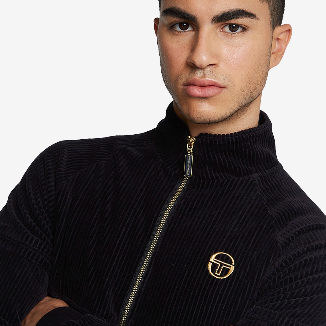 Upgrade your athletic wardrobe with the Sergio Tacchini Tacchini Orion Rib Velour Track Top in Black. Combining vintage style with modern comfort, this track top is made from a soft velour corduroy cotton blend that keeps you warm and comfortable during any activity.