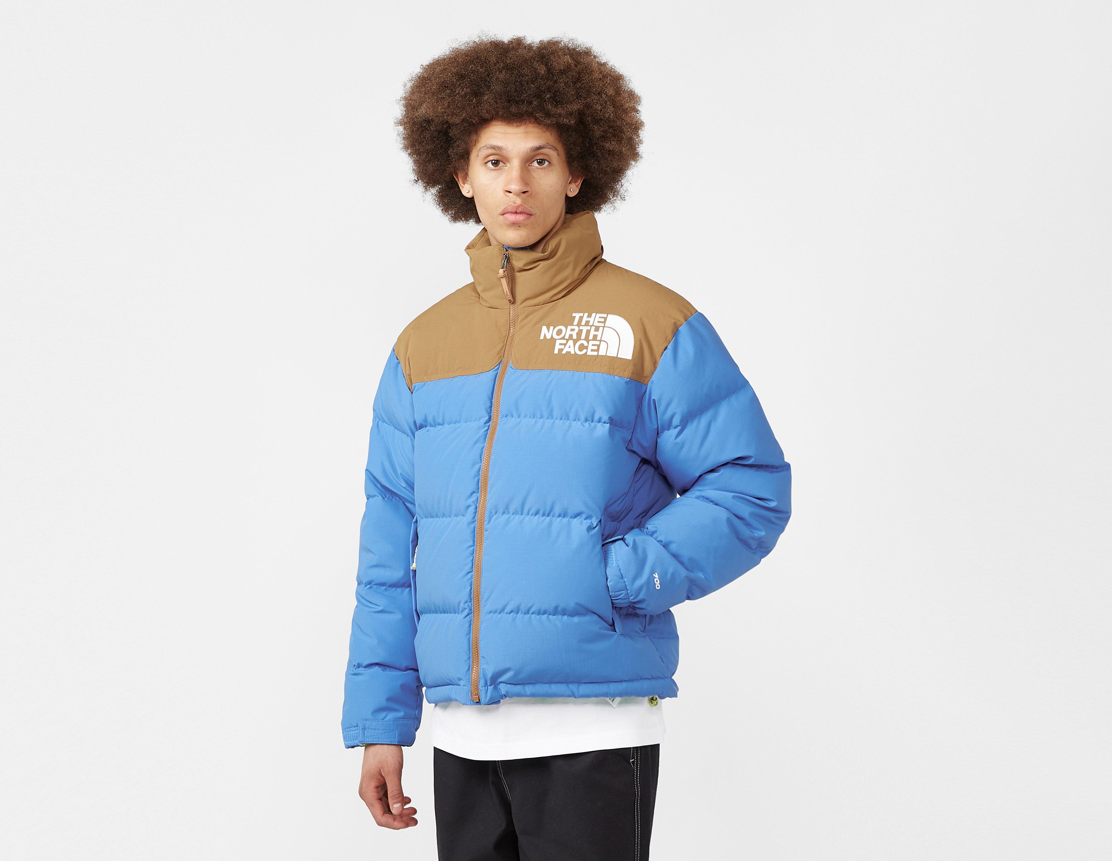 The North Face '92 Low-Fi Hi-Tek Nuptse Jacket, available in Super Sonic Blue/Utility Brown, seamlessly blends high-alpine features with street-ready style, offering versatility for any occasion.