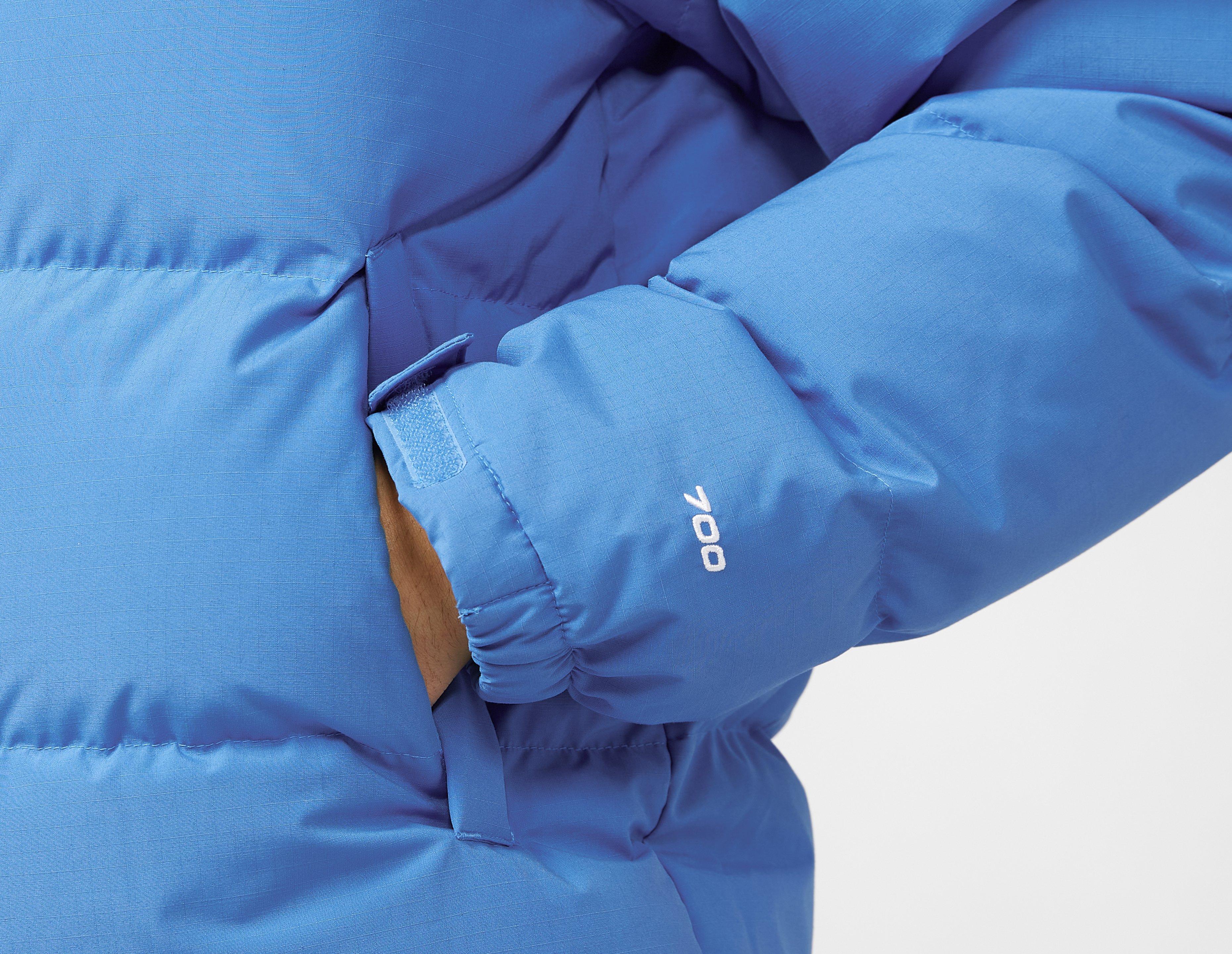 The jacket also showcases the signature shiny ripstop fabric, iconic oversized baffles, and stowable hood that keep you warm and dry in inclement weather, reminiscent of the original '92 design.