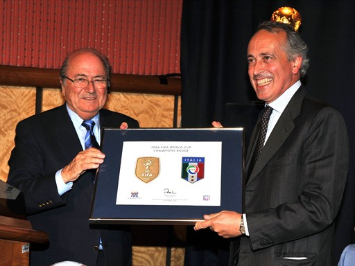 "Wearing a badge to mark the team's triumph in 2006 is a way to proudly commemorate, day after day, the title of world champion," said the FIFA President, who personally congratulated the Italian world champions during their training session at the Italian Football Association's academy in Coverciano.