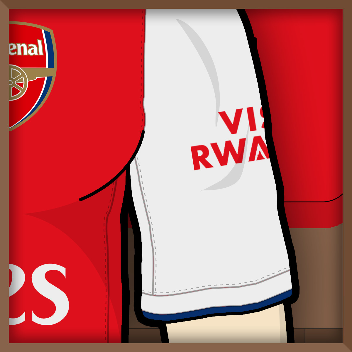 According to leaks, Arsenal's 19/20 home kit will be very traditional, composed by a red shirt with white sleeves. Three white stripes will also be present on the shirt, most likely on the shoulders., I believe there'll be small blue details as well, althought that's not entirely confirmed. m White shorts and socks complete the kit.