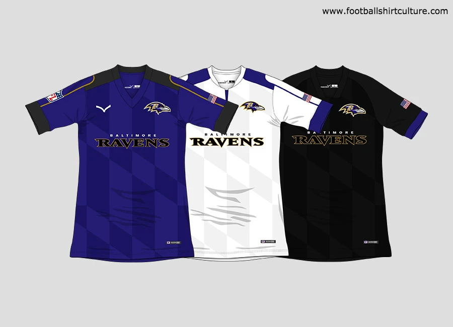 Designfootball member Firman Hendika recently started a new project called “NFL to Soccer”, and after his Arizona Cardinals and Buffalo Bills kit concepts, today we bring you the Baltimore Ravens.