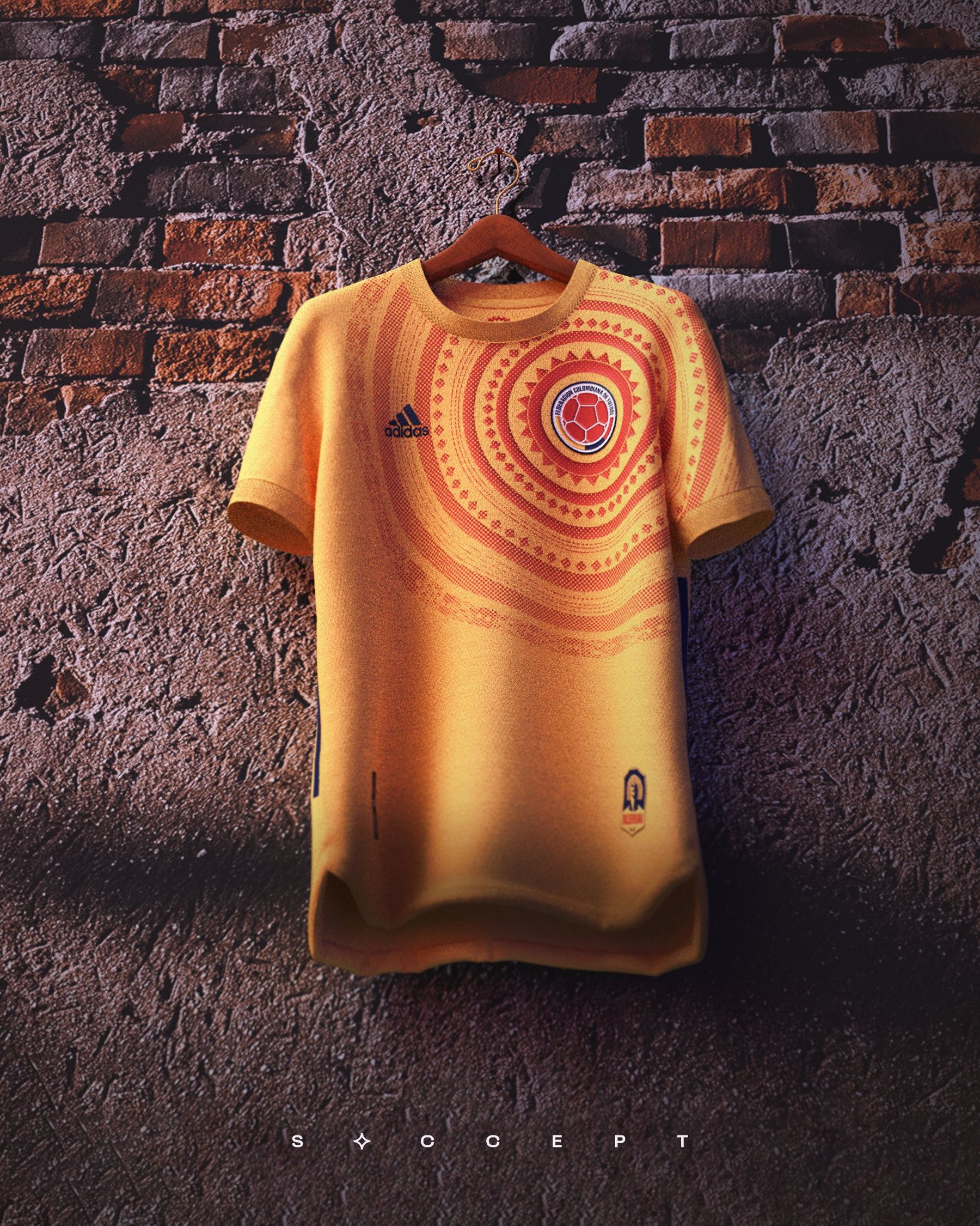 SOCCEPT’s superb Colombia concept is a case in point, incorporating the stylings of the traditional “sombrero vueltiao”, or “turned hat”, and, through this embellishment to the pale base, going some way to returning La Tricolor to an orange hue as first choice.