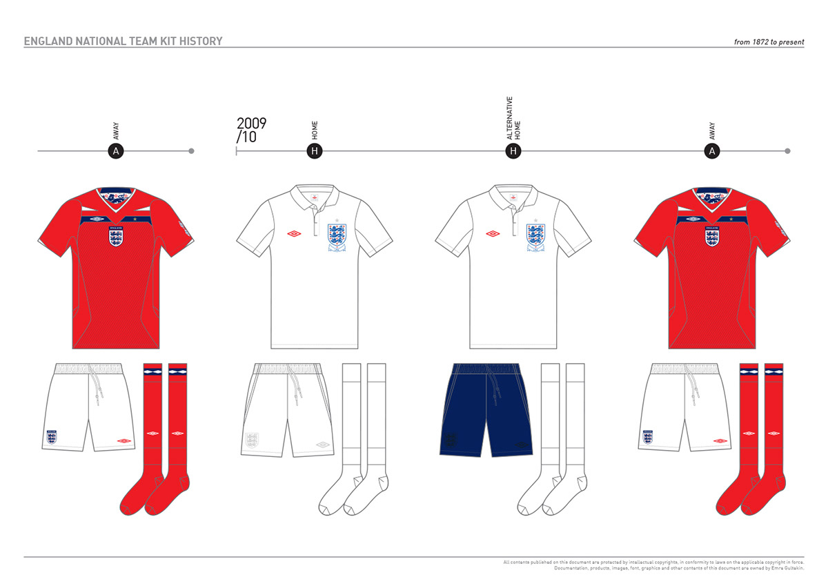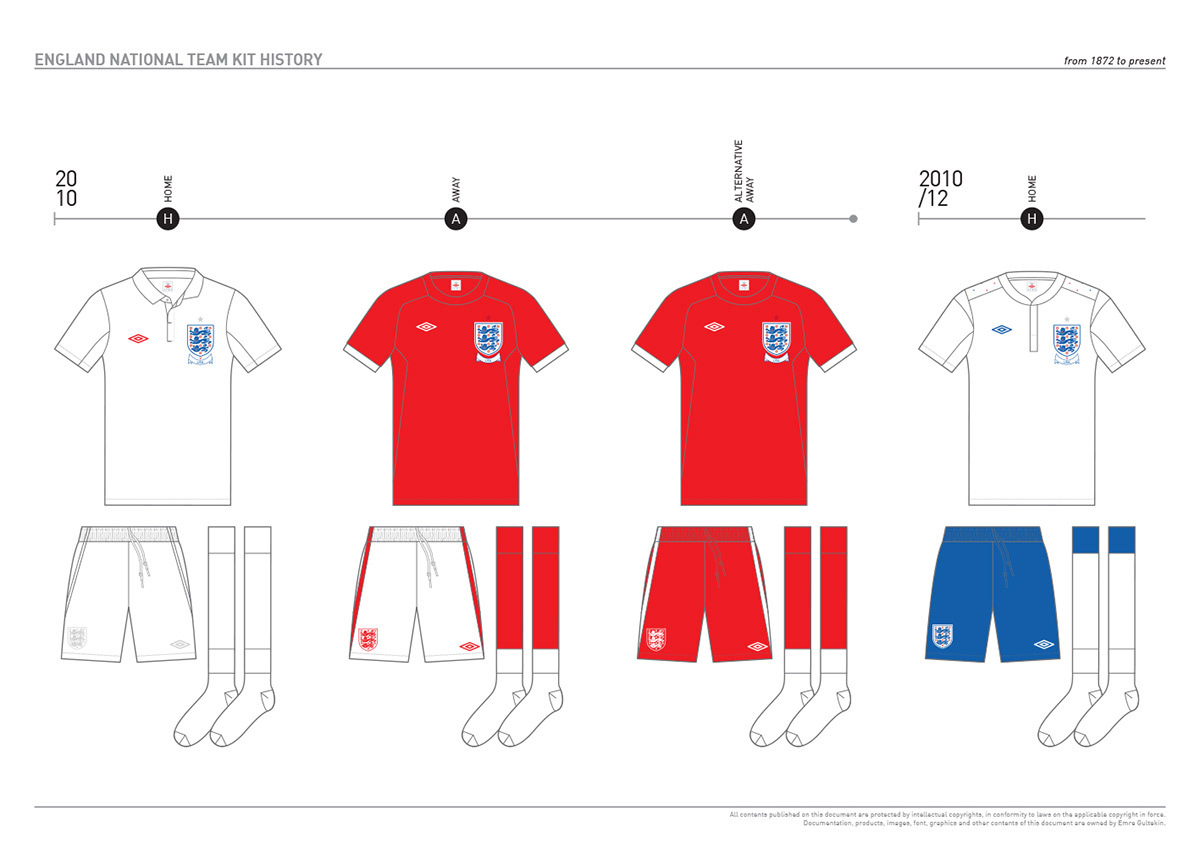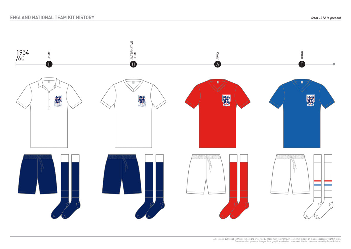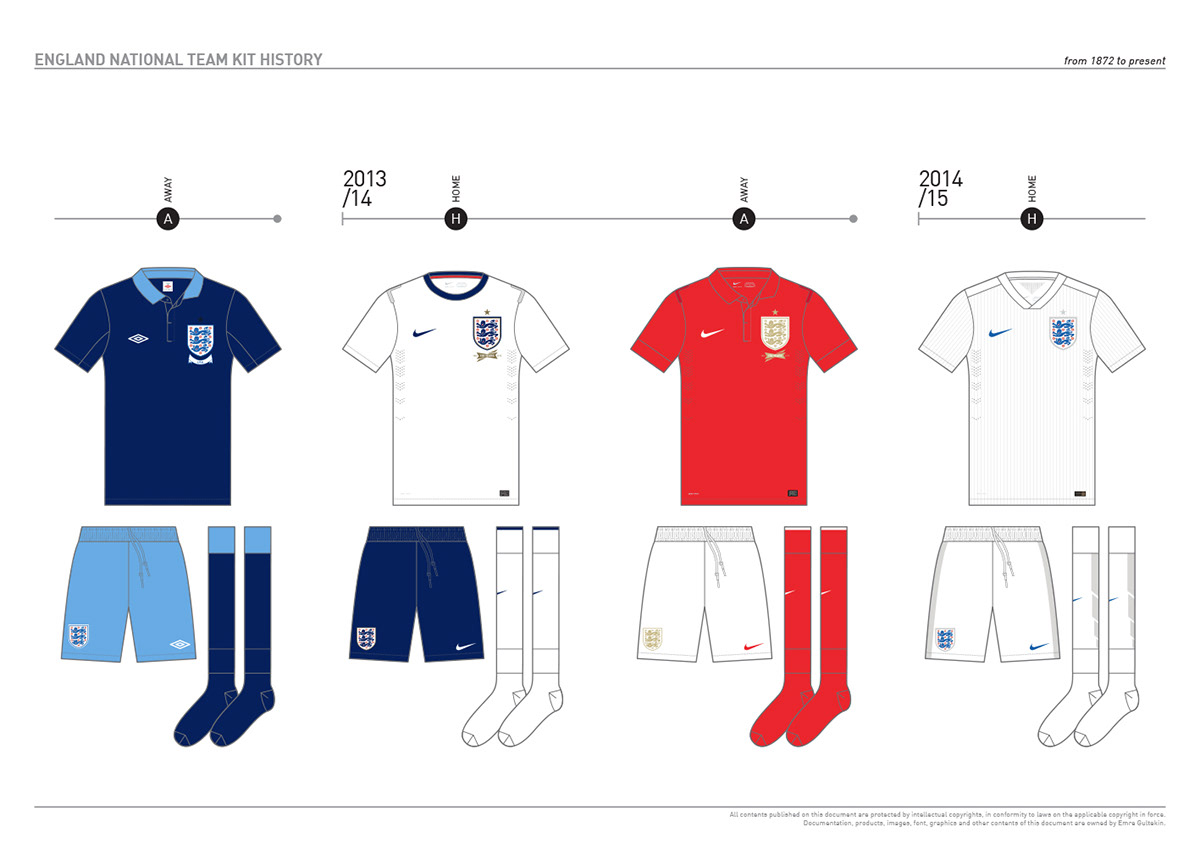 Graphic designer and sportswear designer - currently Senior Sportswear Designer at Fanatics - Emre Gultekin has added to his catalogue of kit histories with this gallery of England’s shirts, shorts and socks.