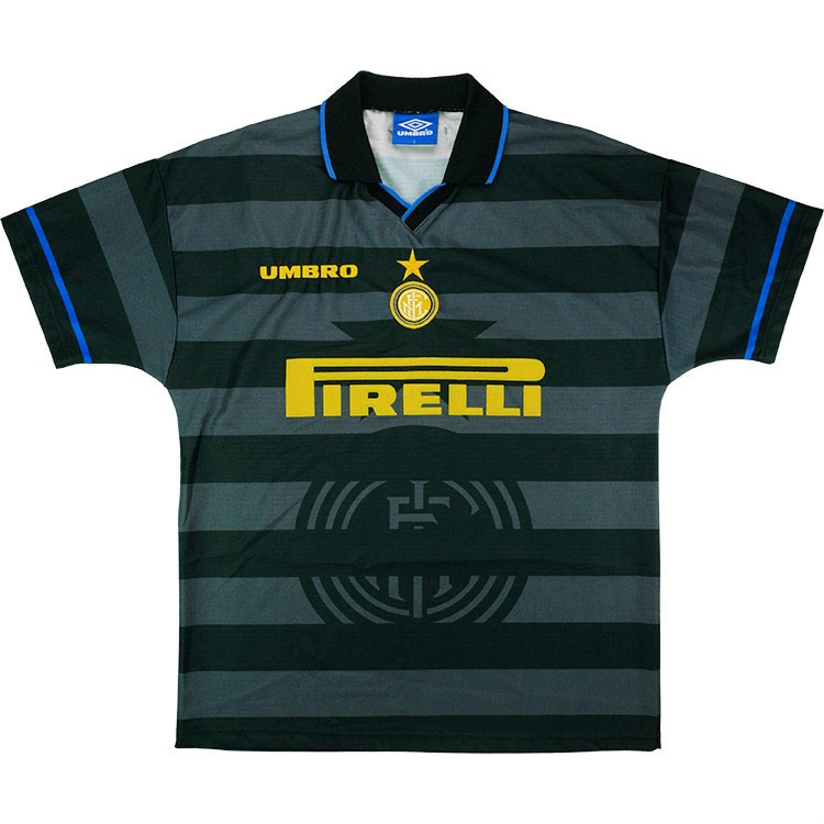 Leaked info point out that the kit will be black with yellow logos and details. Just like other Nike third kits for the season, 90s aesthetics will be incorporated into the kit - this include the old Nike logo and 90s inspired design elements. In this case, I used Inter's 1997-98 third kit as an inspiration. As a result, this third kit features a subtle hooped pattern and an - again subtle - Inter crest watermark.