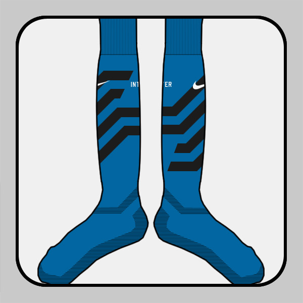 Inter's home shirt will be predominantly blue, according to leaks, hence why I've used blue sleeves. The most distinctive feature, however, will be the stripes, which will mix ordinary vertical stripes and diagonal ones. Black shorts and blue socks - with the same stripped pattern as the shirt - complete the kit.