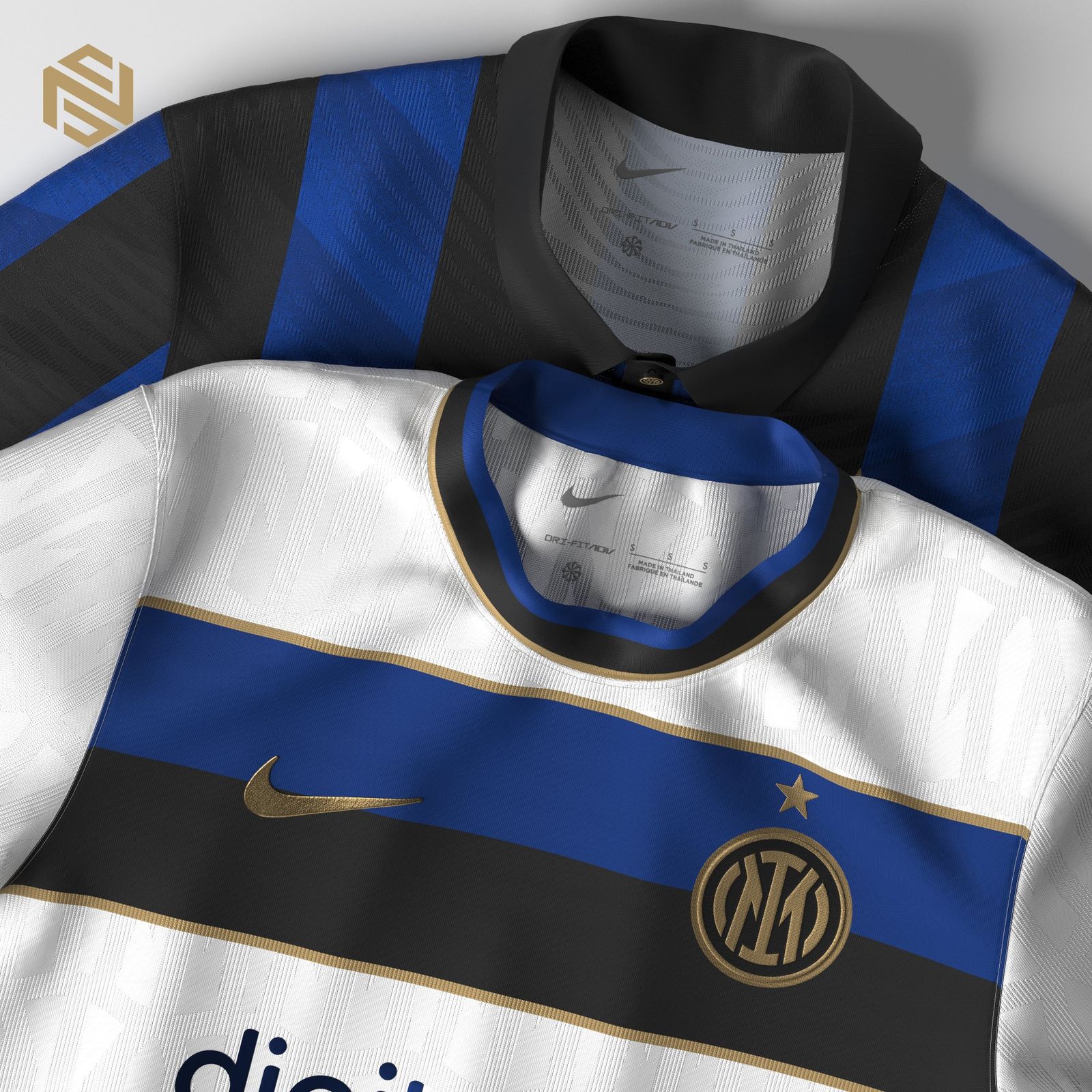 Largely dispensing with the heavier stylings of Inter’s current “IRL” wardrobe, the Nike-branded creations boast gorgeous sublimation/jacquard patterns with a classic and timeless overall look.