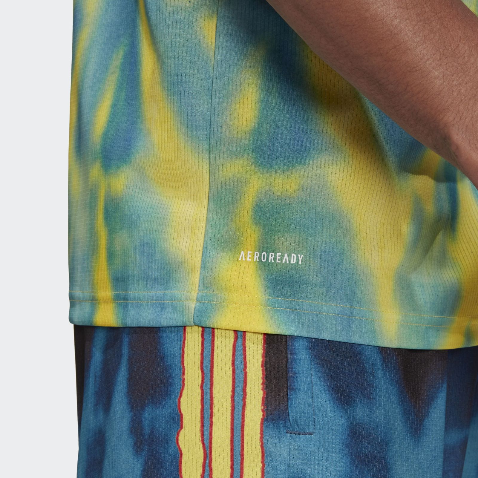 Starting with a repurposed Arsenal shirt, Pharrell explored the adidas archives to select one of the most recognised kits from the London club’s history, the ‘bruised banana’ jersey from the 1991-3 seasons, giving it a hand painted, paint-bleed effect update. The distinct zigzag graphic features on a treasured jersey for the club’s fans not just for its forward thinking and distinctive style, but also worn during a season where the club won the coveted domestic cup double.