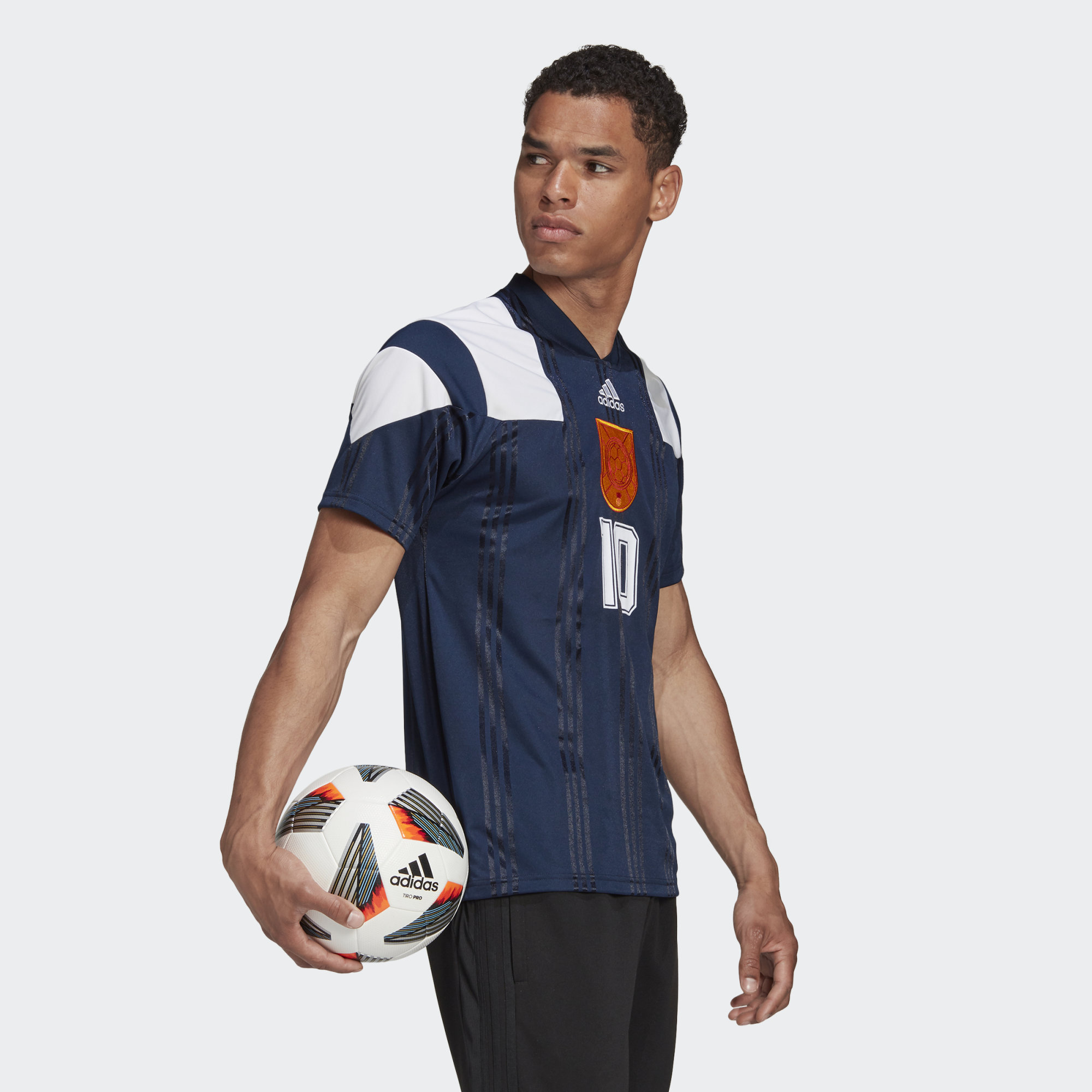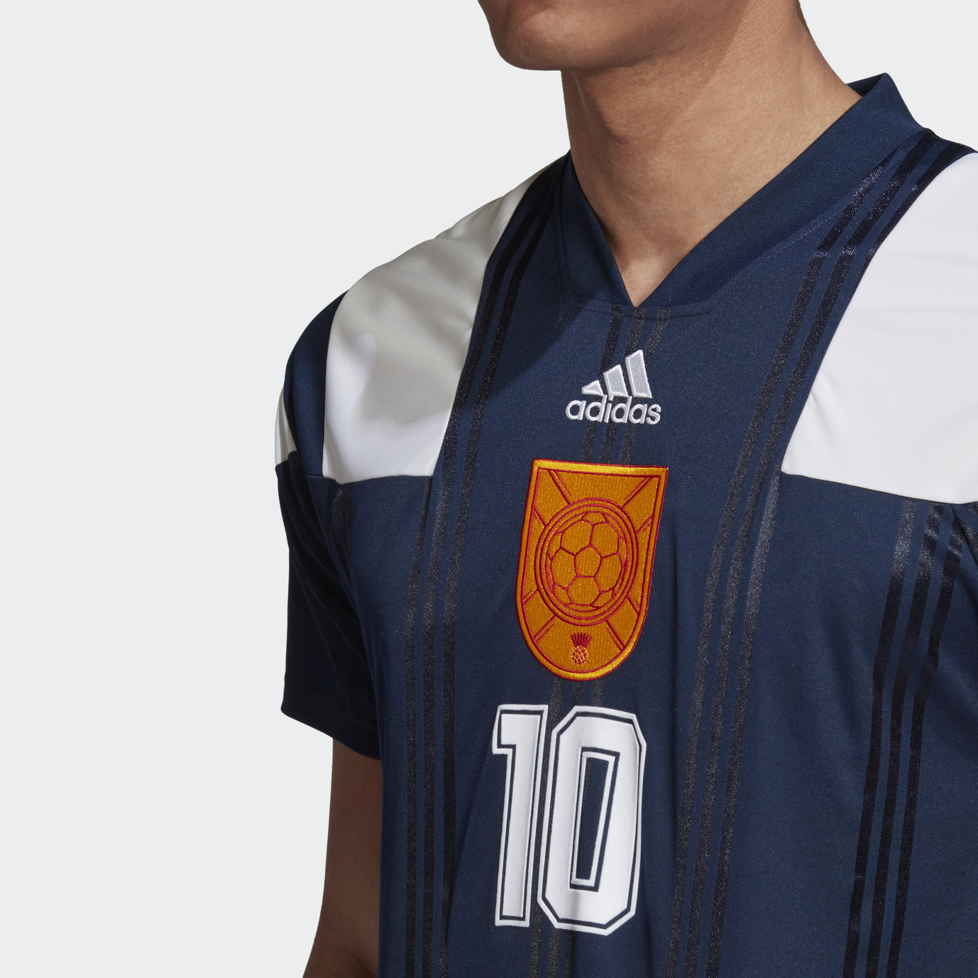This jersey celebrates a vibrant Scottish city with a long history. Dressed in familiar colours, it reaches into the adidas archives for a memorable look. A flock-print name and number on the back add a 90's finish.
