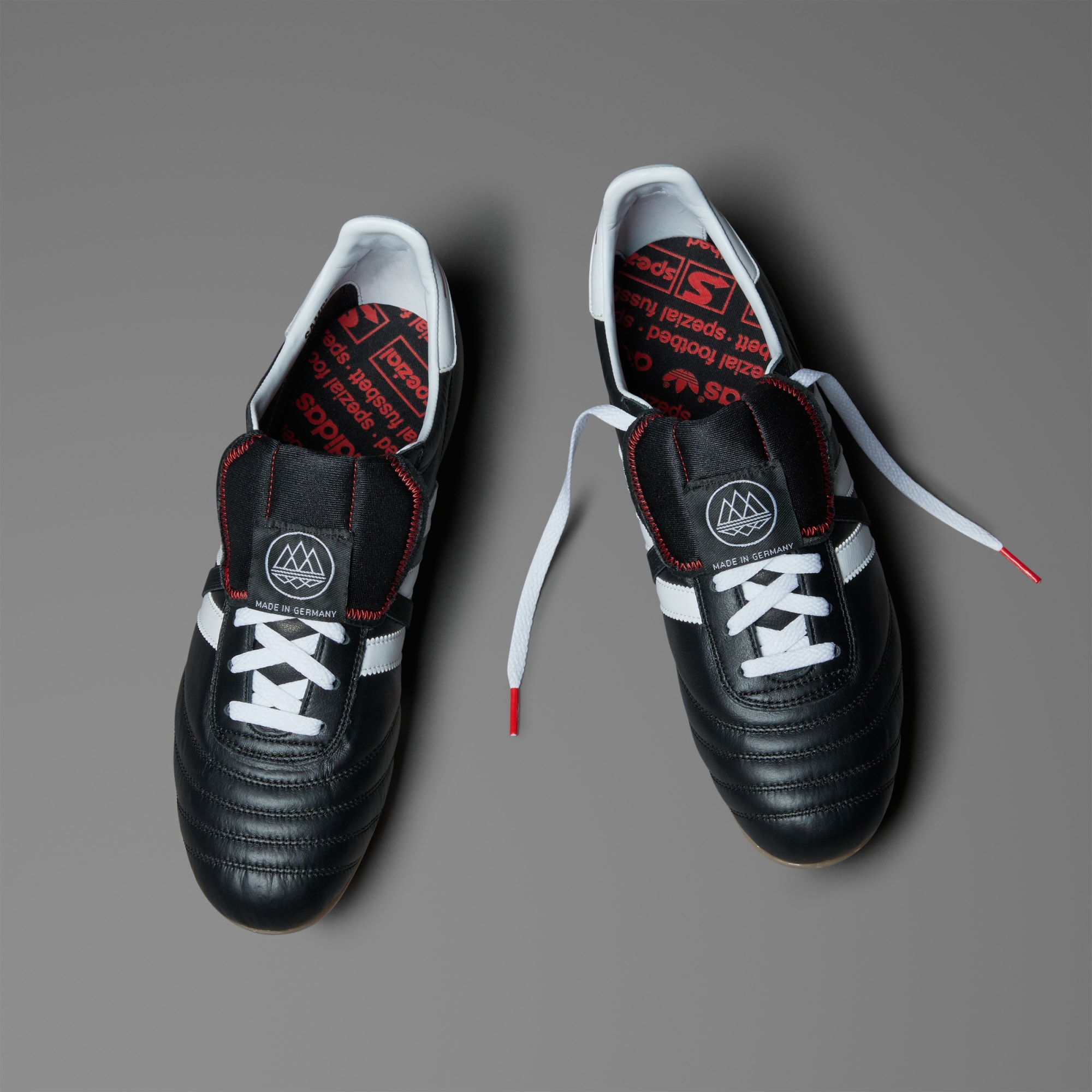 For performance, the Copa Mundial SPZL F.C. boot is reworked with an extended fold-over tongue, red sole studs, and SPZL branding. The footwear line is complemented by lifestyle trainers suited to both street and pitch settings, while a specially designed football completes the capsule with dual SPZL and SPZL F.C. markings. The range continues the Spezial tradition of reinterpreting archive influences through a modern football identity and is available in limited quantities from select retailers.
