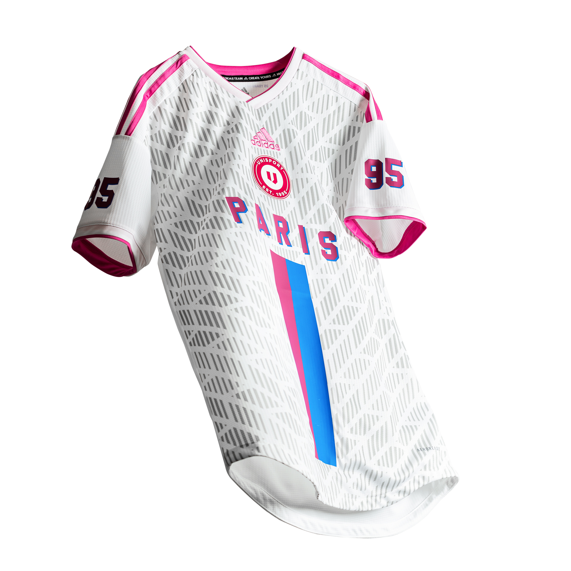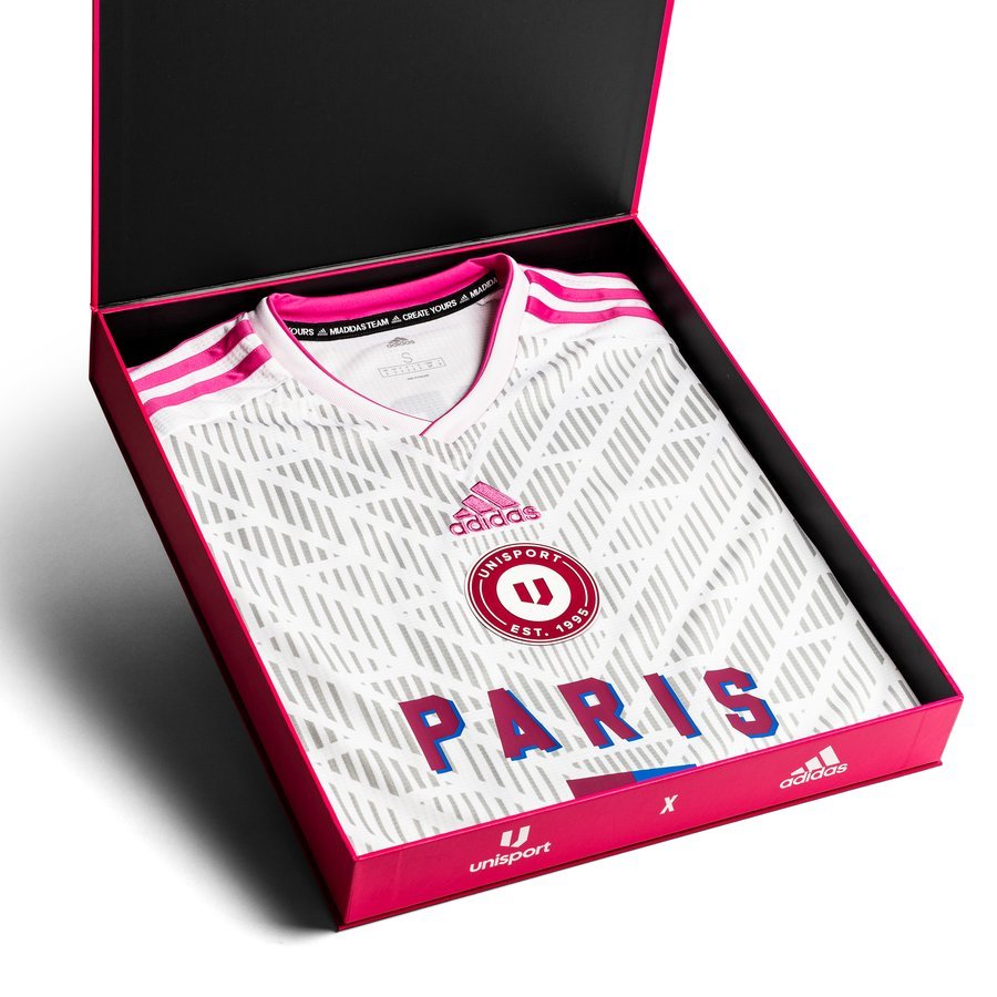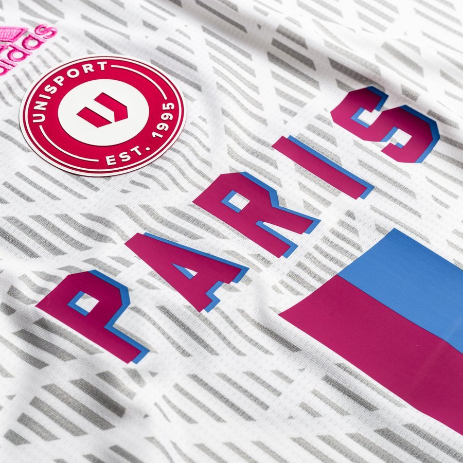 This limited edition shirt is inspired by Paris, the French capital, and features an eye-catching pink stripe. They celebrate Paris as the new capital of football, with this shirt that carries adidas’ logo on the middle of the chest and Unisport's anniversary badge just below.