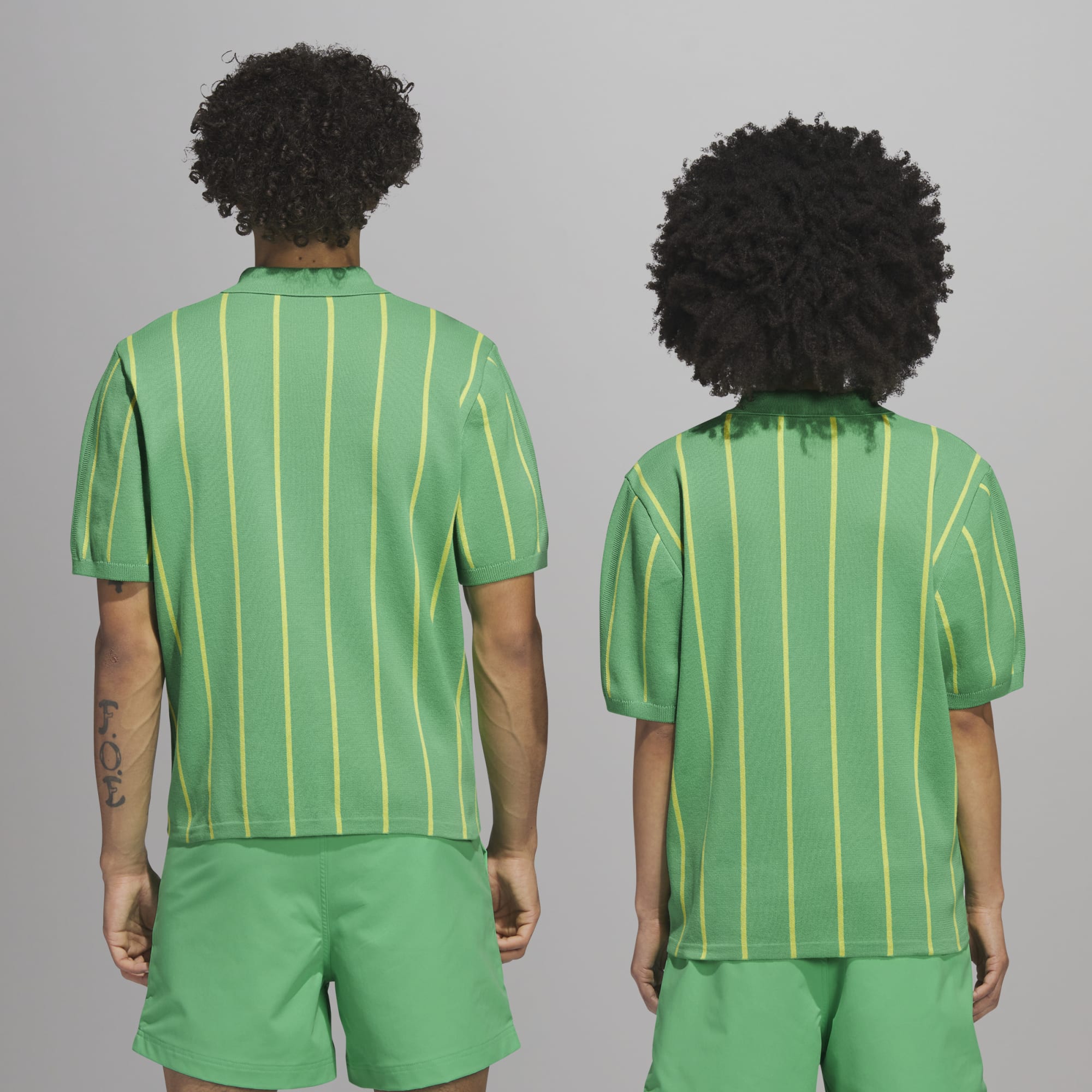 This Long Sleeve Pharrell Williams Knit Jersey in Semi Screaming Green forges a nostalgic connection to football culture through an exploration of timeless colors and archival cut lines.