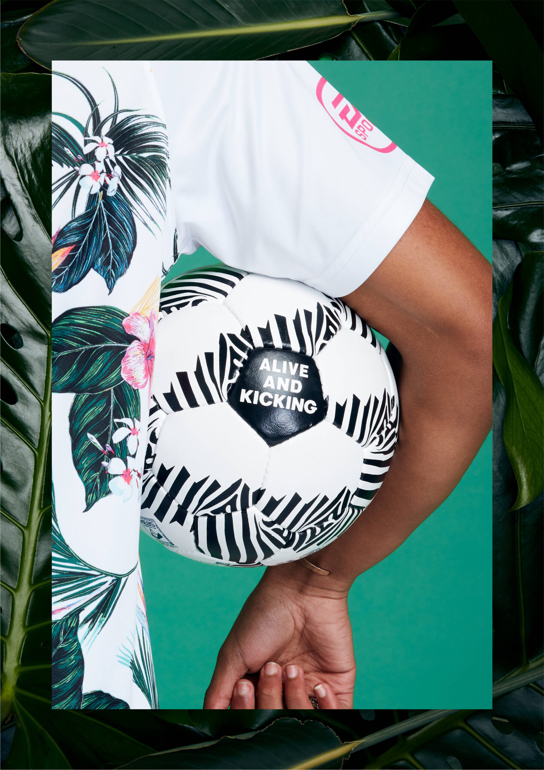 Limited to 300 pieces, this AKFC X Hummel Shirt was inspired by the flora and fauna of Ghana, Kenya and Zambia and designed in collaboration with children who have benefited from the Alive & Kicking football for good programmes.
