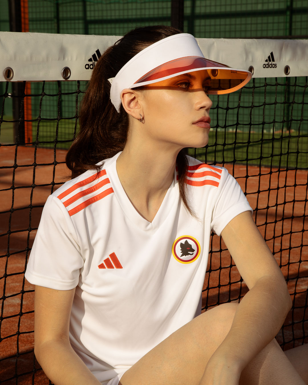 Comprising shirts, shorts, a skirt and a racquet (racket), the range’s clothing items are in white with trim that merges the Giallorossi’s yellow and red colouring into an orange and the playing implement is halved with the famous Lupetto - wolf - emblem in black as the focal point.