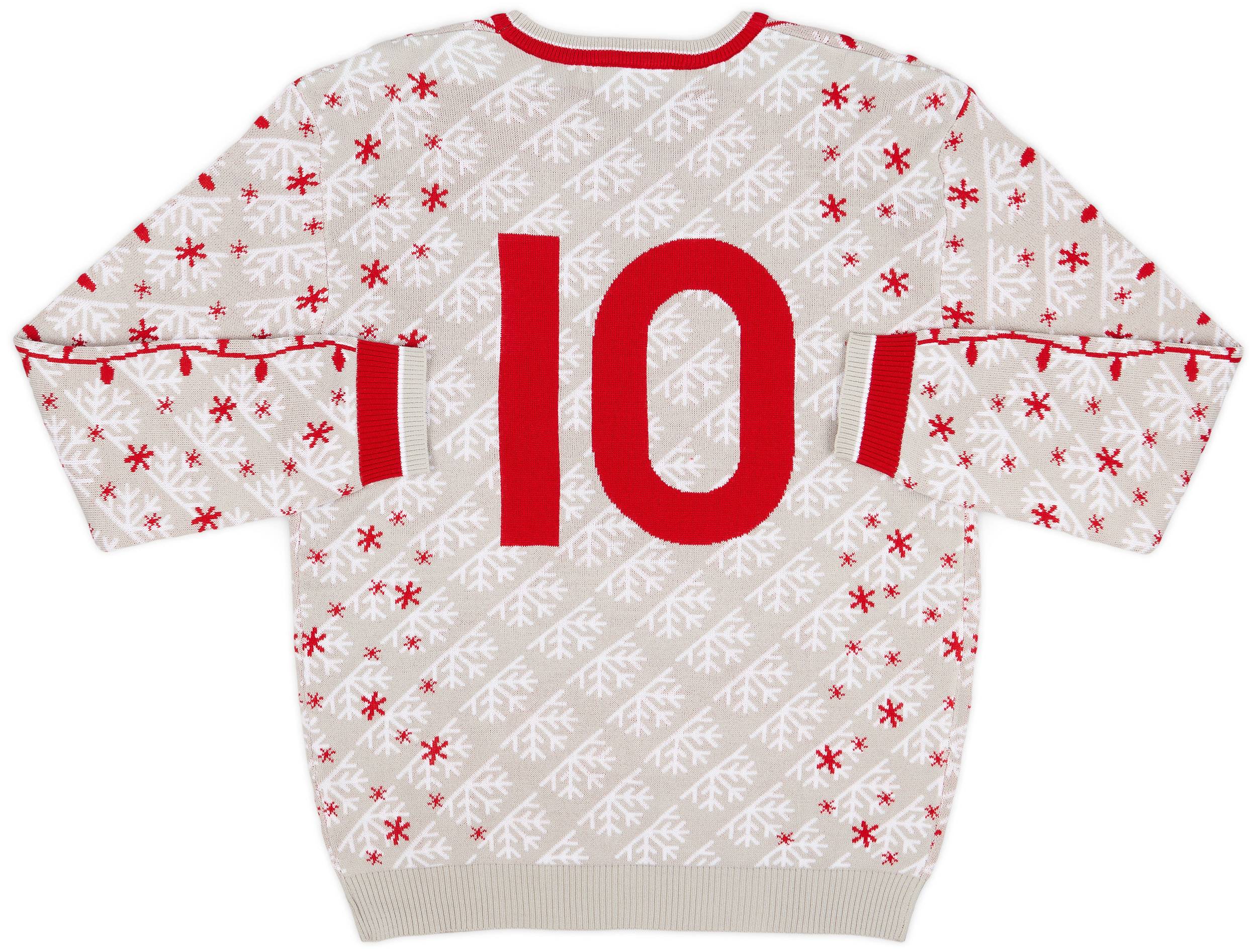 The silvery grey creation with unmistakable diagonal patterning is updated here with a snowflake effect in white and red, the famous “Candy” sponsor is replaced with the billing of this item, and the liver-bird crest becomes a Christmas tree.