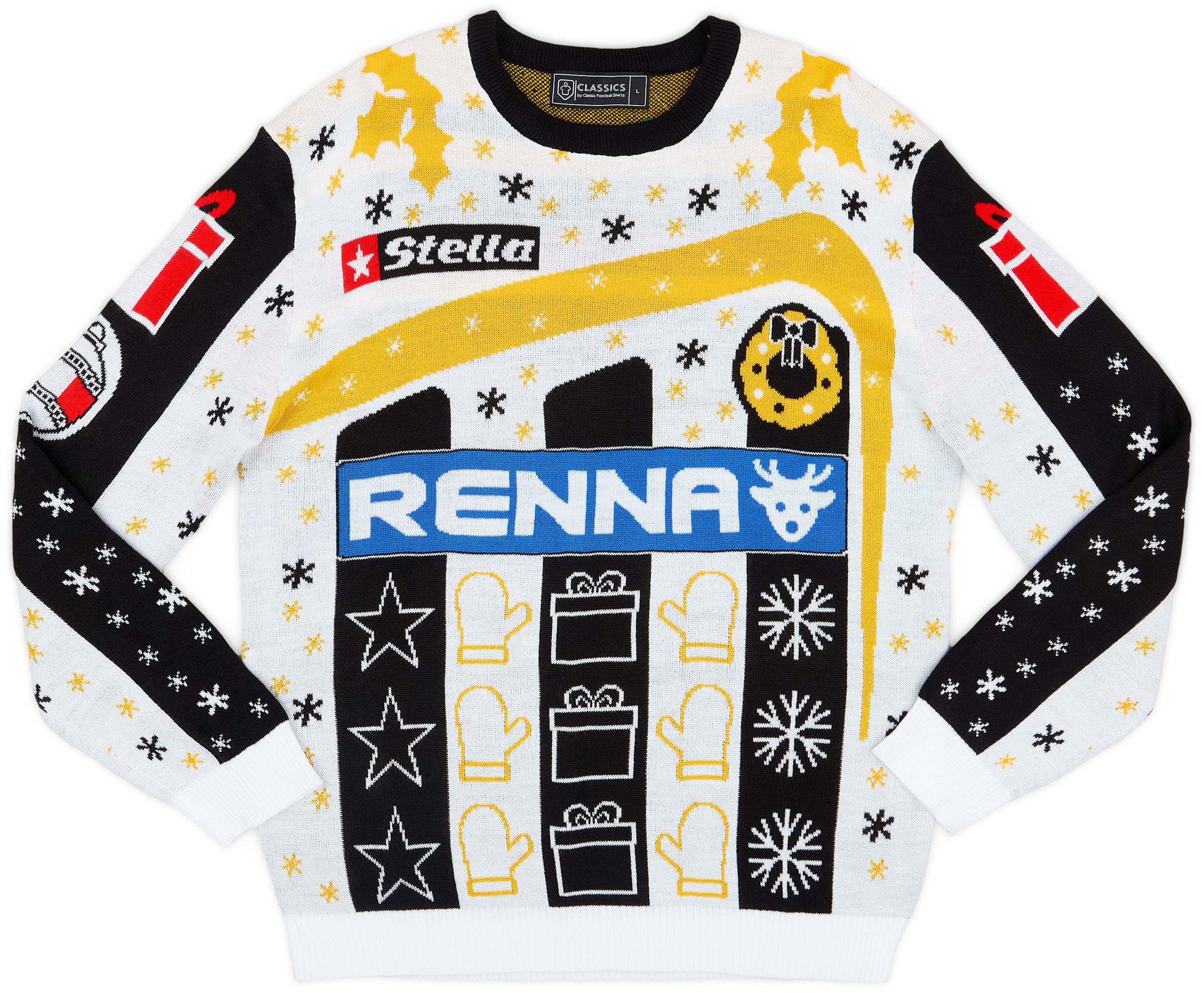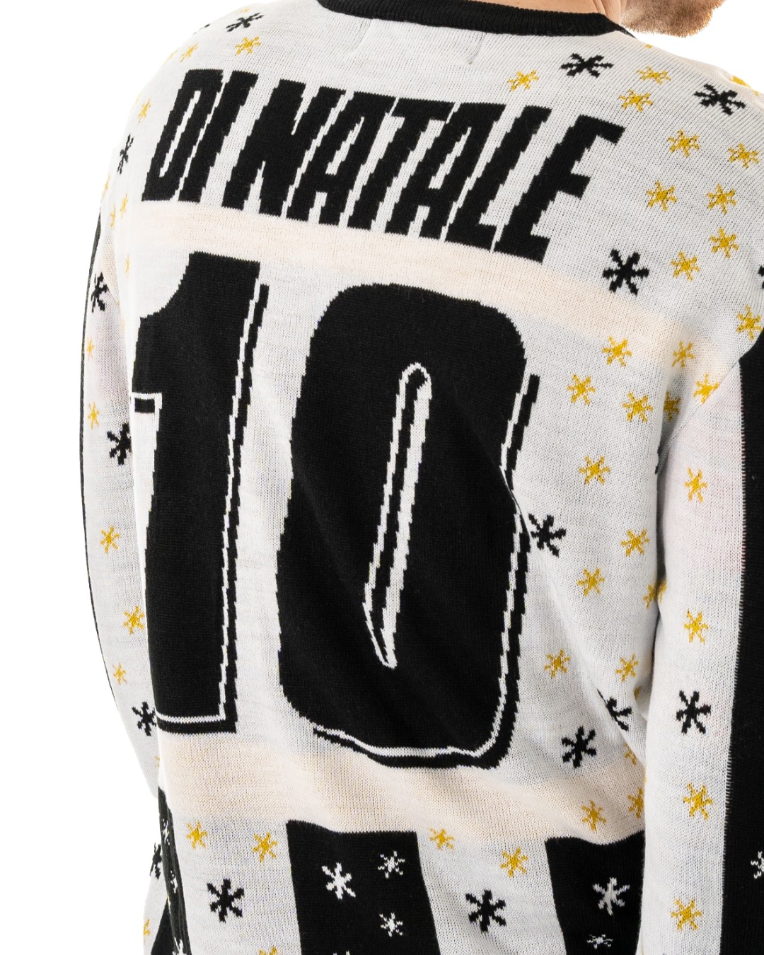 Nodding to the white-black-and-gold Lotto Home shirt of Italian side Udinese Calcio in the 2009-10 season, this is the “Di Natale Stella” Christmas jumper from Classic Football Shirts.