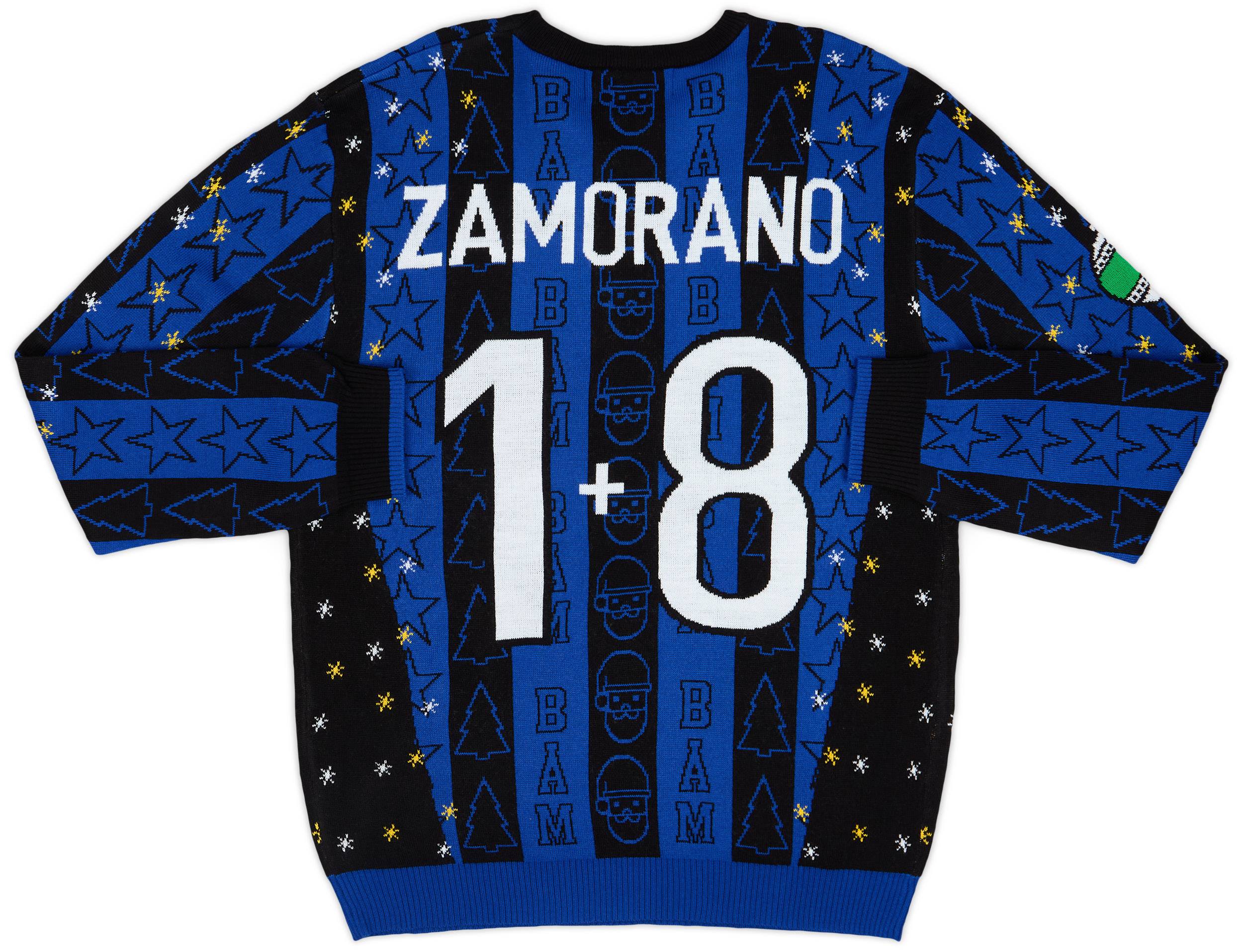 The black and blue stripes of the Serie A side are present and correct, complete with “BAM BAM” embellishment to refer to Zamorano’s nickname, and Noel-flavoured imagery replaces the club’s - including sponsor “Pirelli” making way for similarly styled “Presents”.