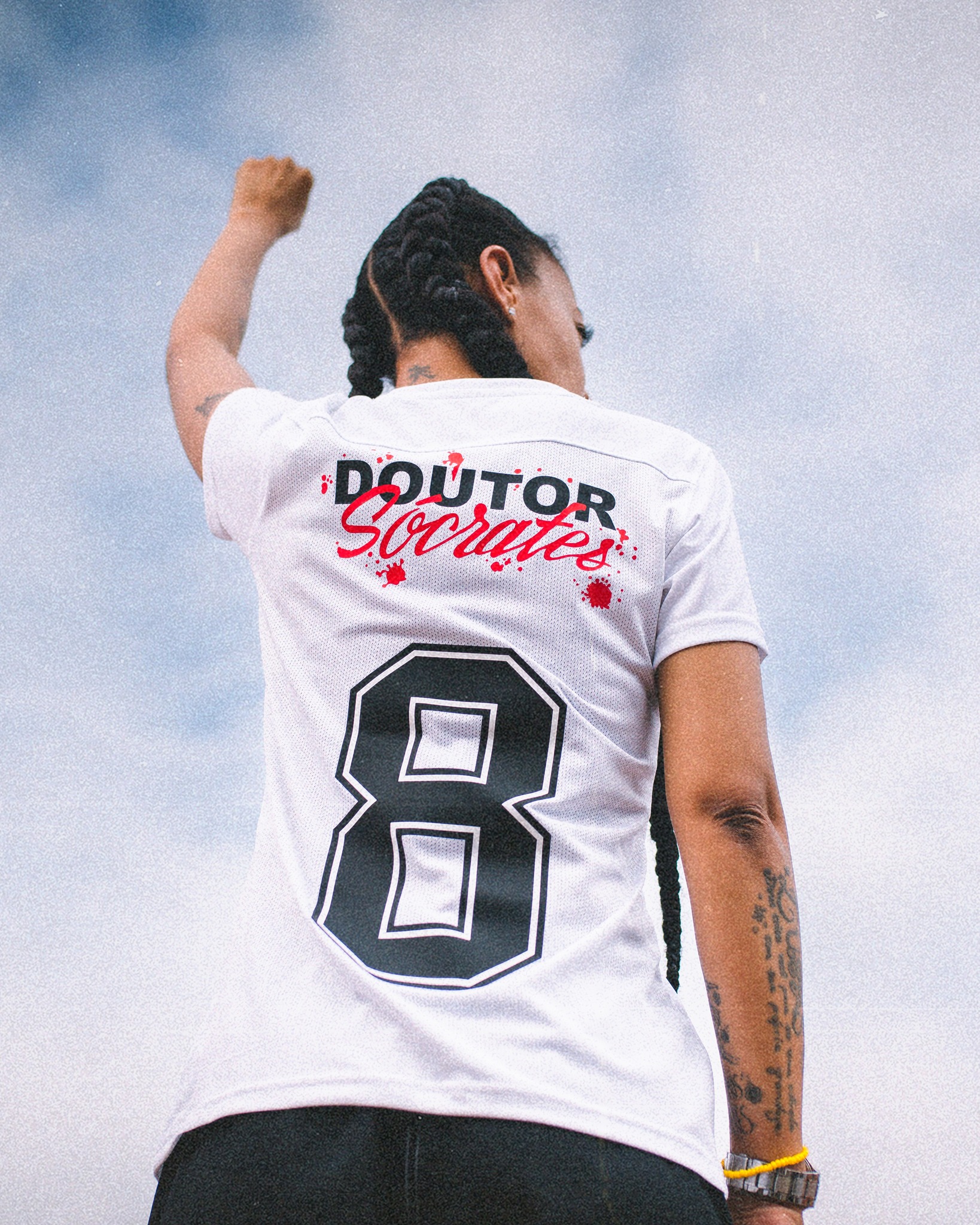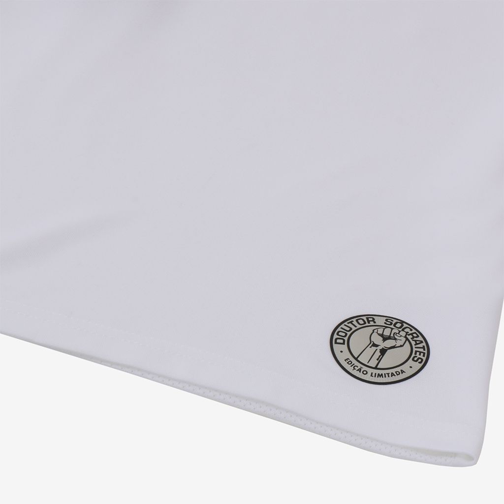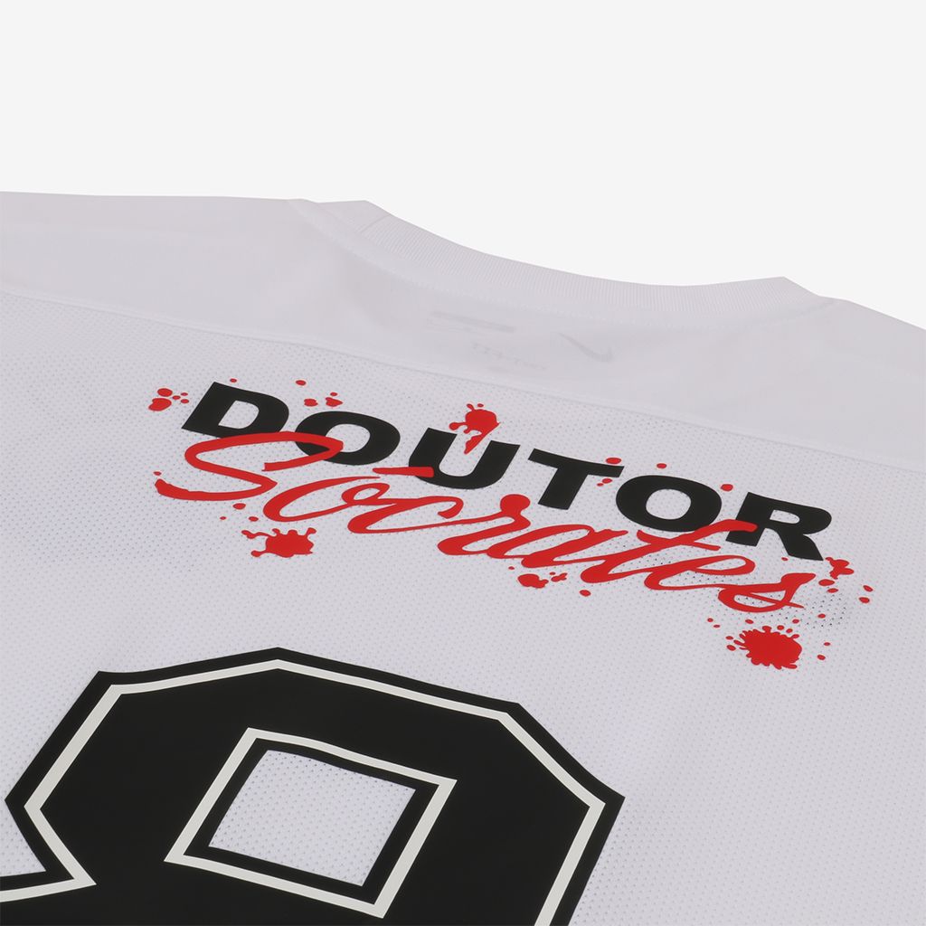 Sócrates was politically minded and one of the driving forces behind the “Corinthian Democracy” movement, with the stylings of this shirt celebrating this fact - the style of print on the upper back indeed refers to the Coca-Cola-esque “Democracia Corinthiana” embellishment of Corinthians’ shirts occurring during Sócrates’s time at the club.