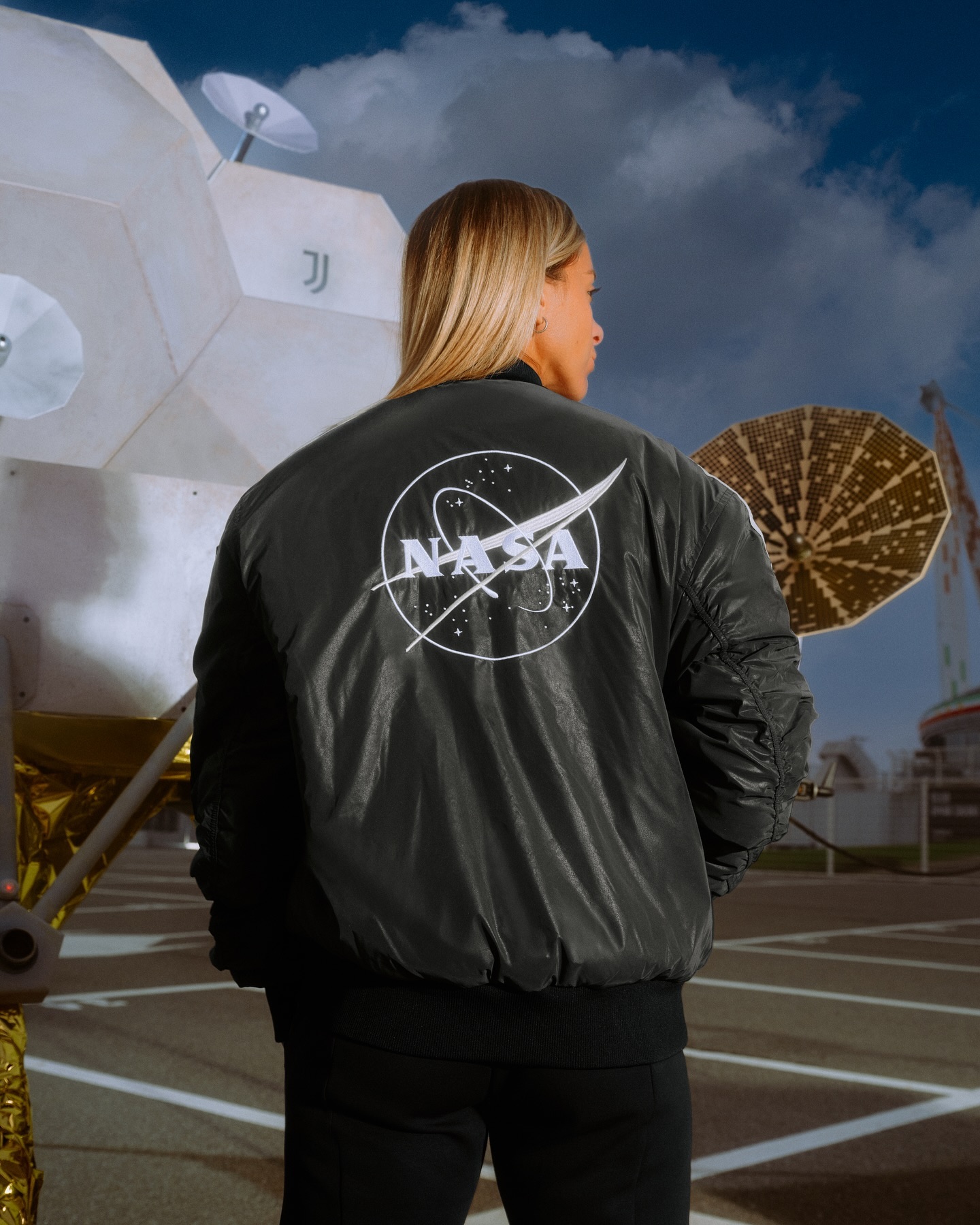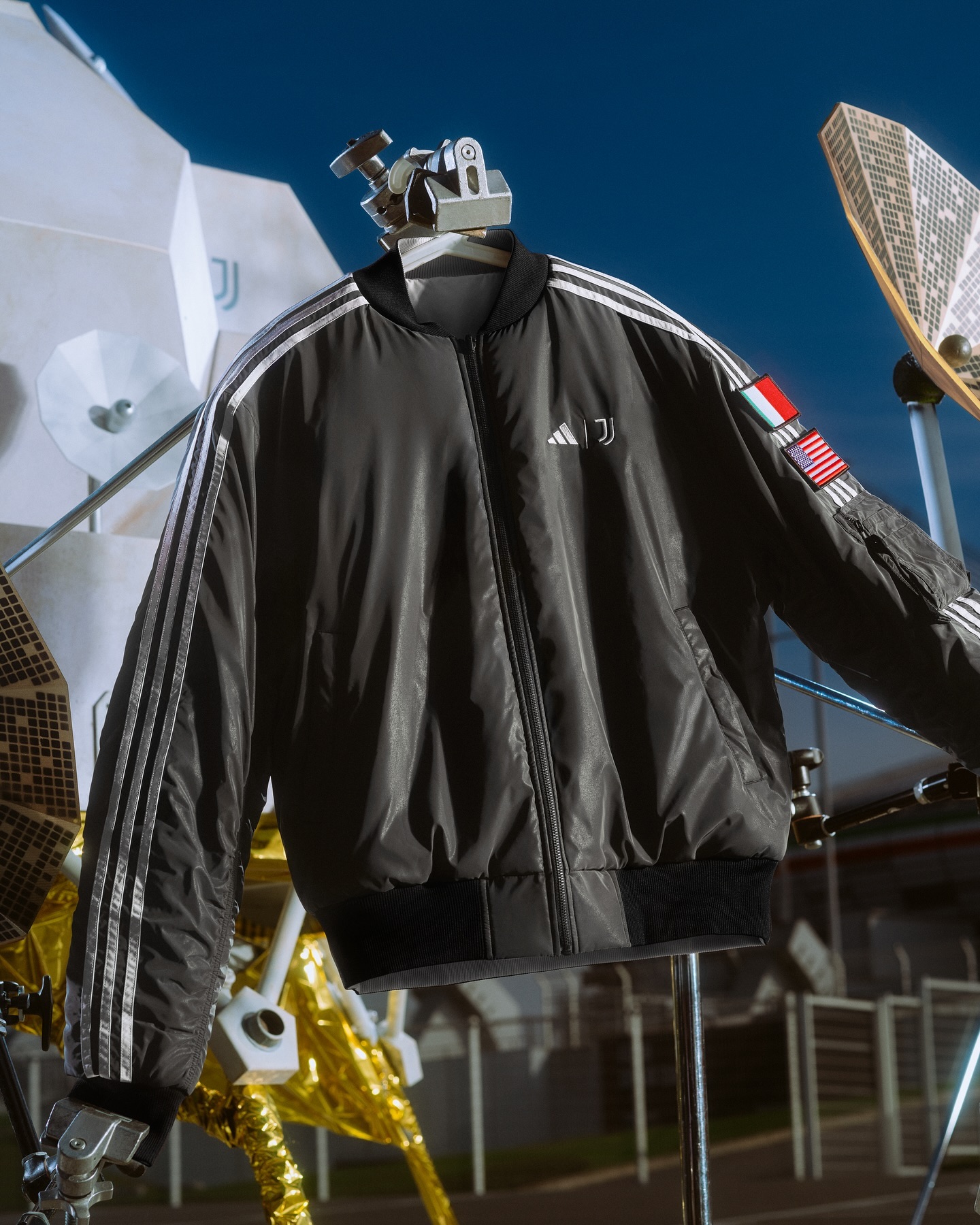 The reversible bomber jacket provides two space-themed styles, inspired by the light and dark sides of the moon. Both sides display a premium logo, with detachable Italy and USA flag patches. Juventus players will wear the jackets during their walkout for the pre-match anthem at their home Derby della Mole game against Torino on 9 November at Allianz Stadium.