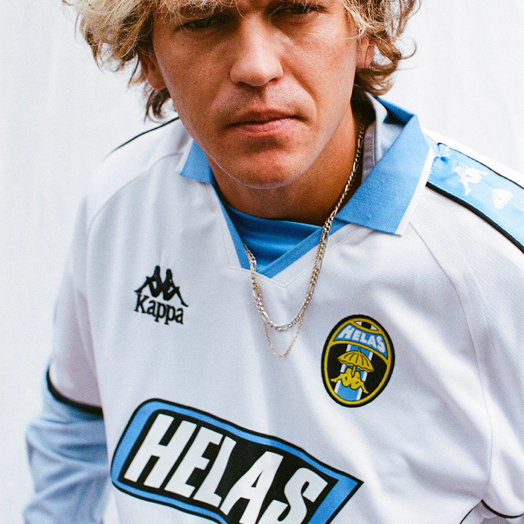 The range highlights Kappa’s classic Banda motif and combines it with the visual identity of Hélas, creating a line that nods to the style and heritage of 1990s football while offering limited edition products for today’s market.