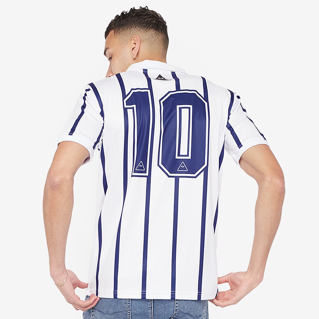 Harking back to, most pertinently, an iconic photoshoot centred on the Manchester-born rock band Oasis, this Lovers FC shirt is a fashion-based update of a 1990s kit classic.