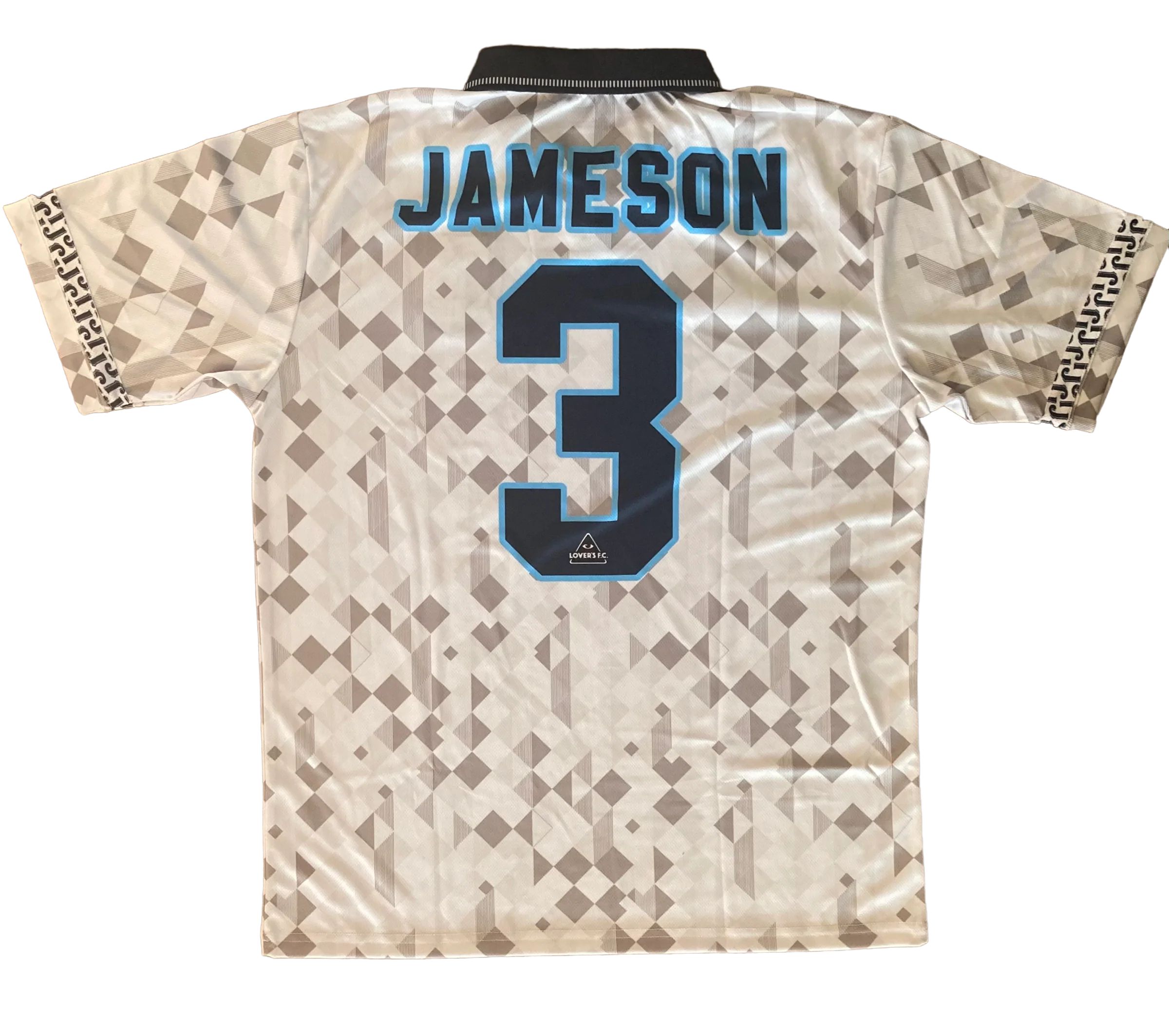 This 'Lionheart' style brings Jameson Branding to the front with the Jamo logo as the club crest, Jamo J logos on the sleeve end, Jameson in the style of the 96 team names, and finished with the number 3 in homage of Psycho Pearce on the rear as a finishing touch.