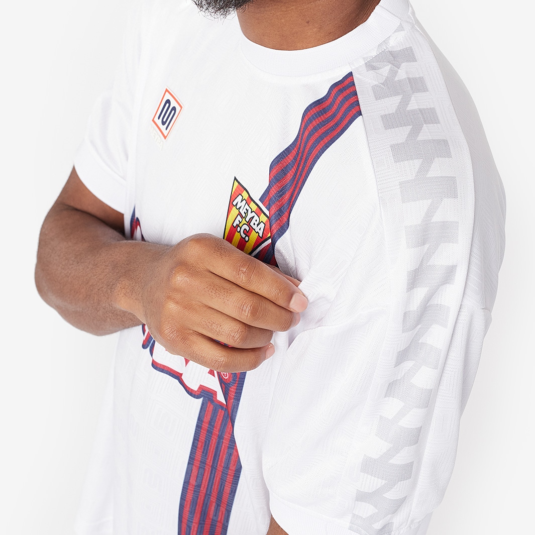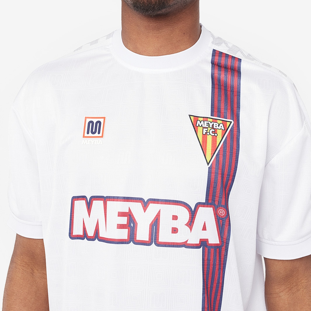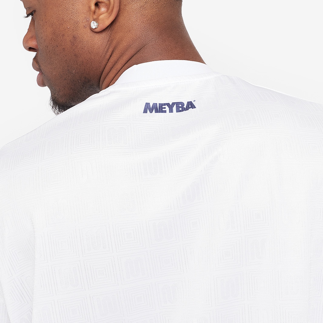 The Meyba Cata Jersey in White features shiny printed details showing off the brand with barcelona roots and years of heritage.
