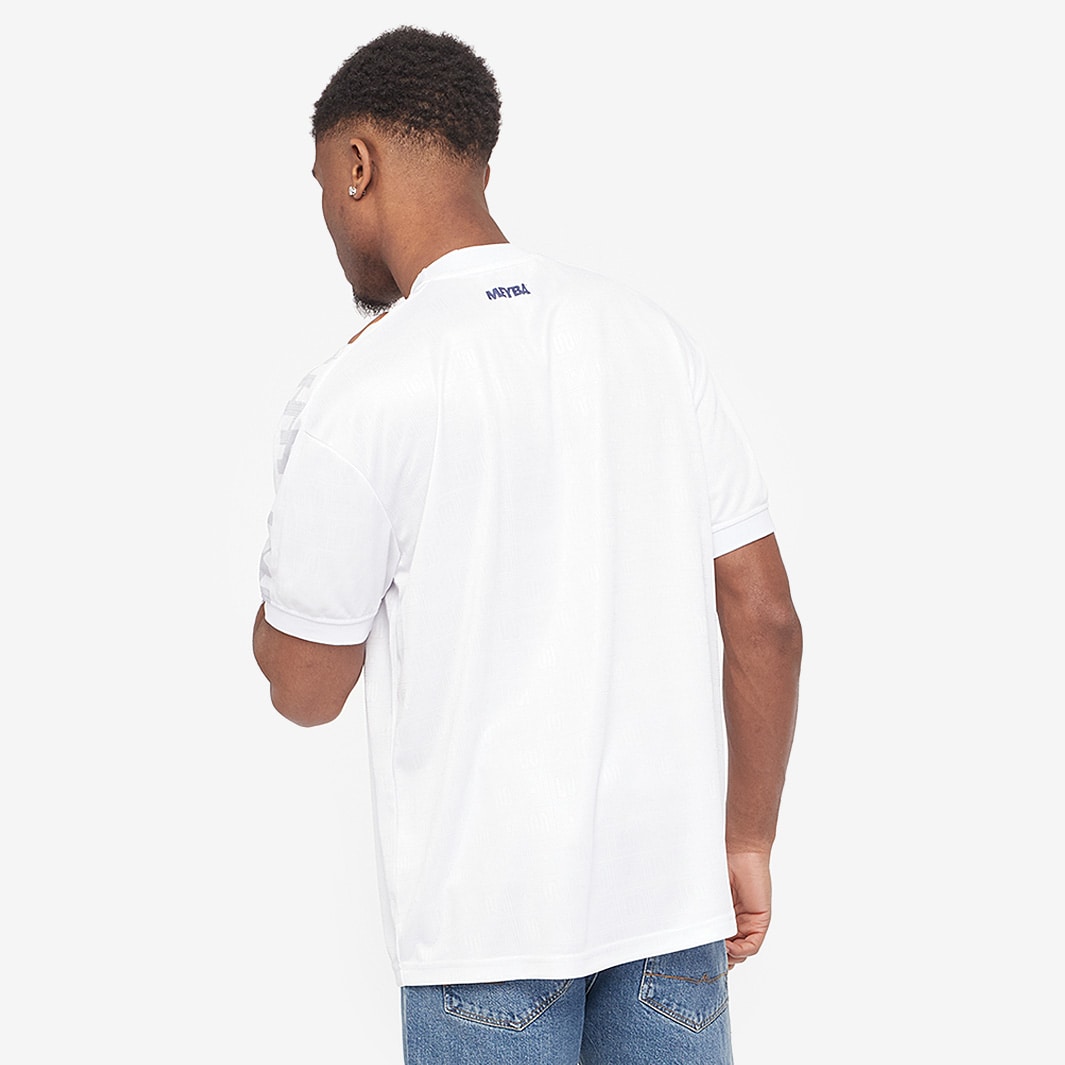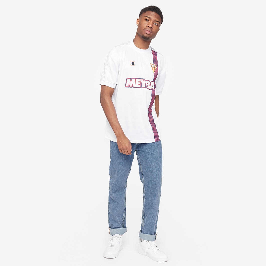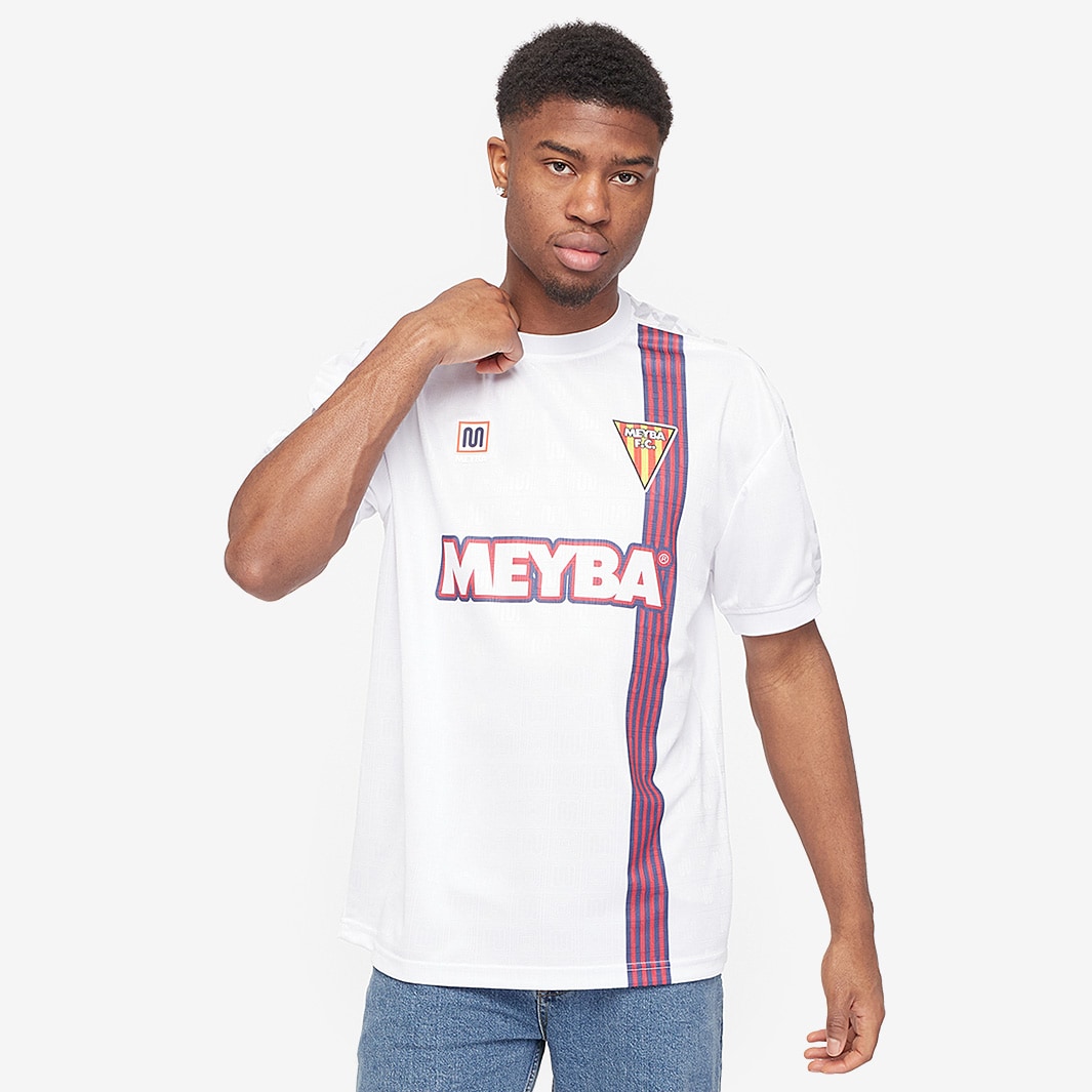 The Meyba Cata Jersey in White features shiny printed details showing off the brand with barcelona roots and years of heritage.