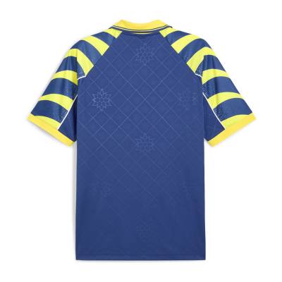 The 2024 fashion-focused drop includes, most notably, a somewhat faithful retro version of a forerunning incarnation’s 1995-96-season blue-yellow-and-white collared Third shirt, complete with intricate jacquard but seeing the contemporaneous supplier logo replaced with the simple - wordless - “Cat”.