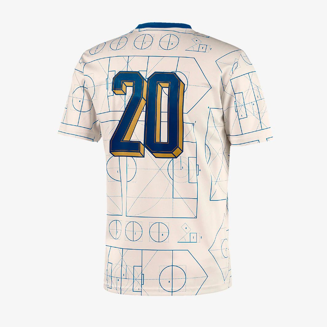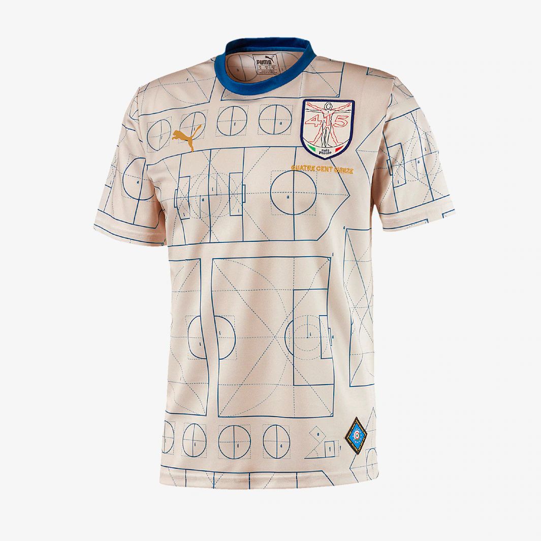 This La Nazionale top has been designed by Quatre Cent Quinze, a French street-wear brand, resulting in a bold and striking design, which includes blueprints to various football pitches.