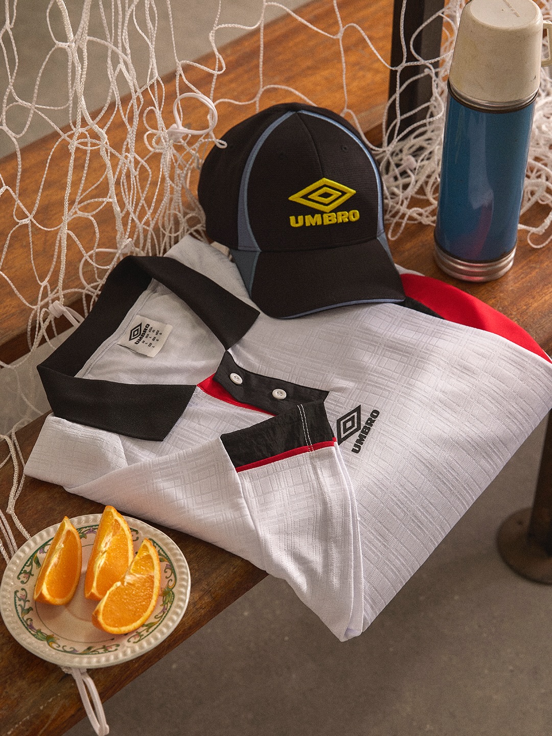 Bottoms complete the range through relaxed track pants, taped track pants, panelled oversized shorts and washed drill pants, maintaining a consistent Umbro football aesthetic across the collection.
