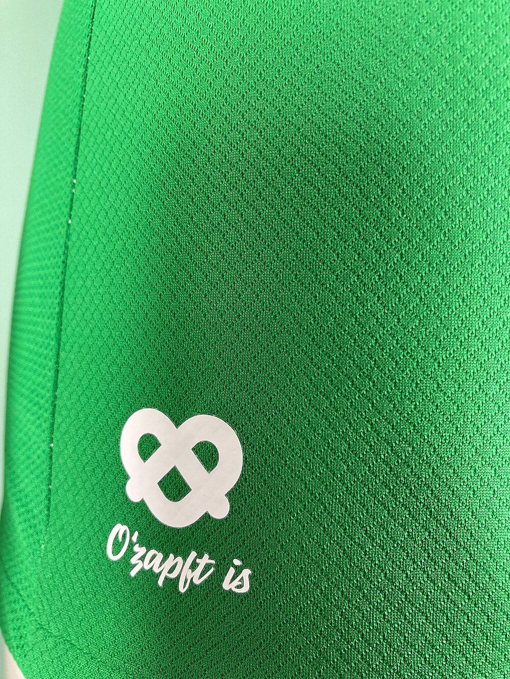 The shirt will be worn, with green Nike shorts - rather than the lederhosen carried in promotional images - and green socks in the 3. Liga tie with FC Erzgebirge Aue this Friday.