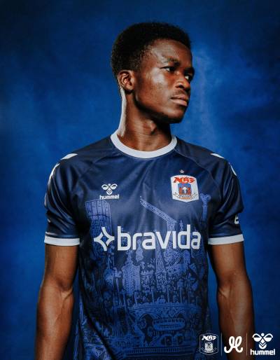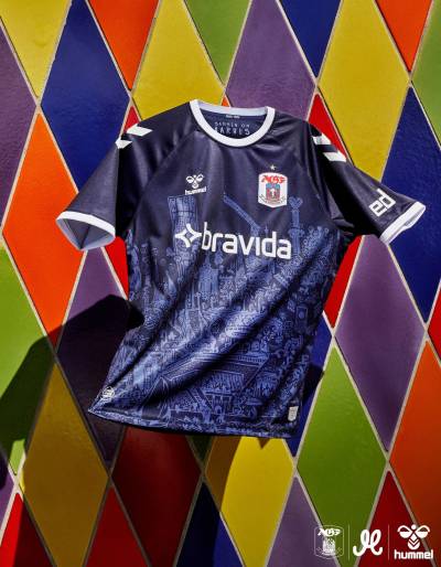 The Danish Superliga’s primary-change shirt for 2023-24 is in navy/dark blue and features decoration courtesy of local artist Kristian Djurhuus (Mormor).