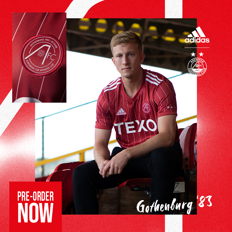 The 22/23 Aberdeen FC home kit is based on the strip worn throughout the unforgettable 82/83 season which culminated in European Cup Winners’ Cup glory on an unforgettable night in Gothenburg.