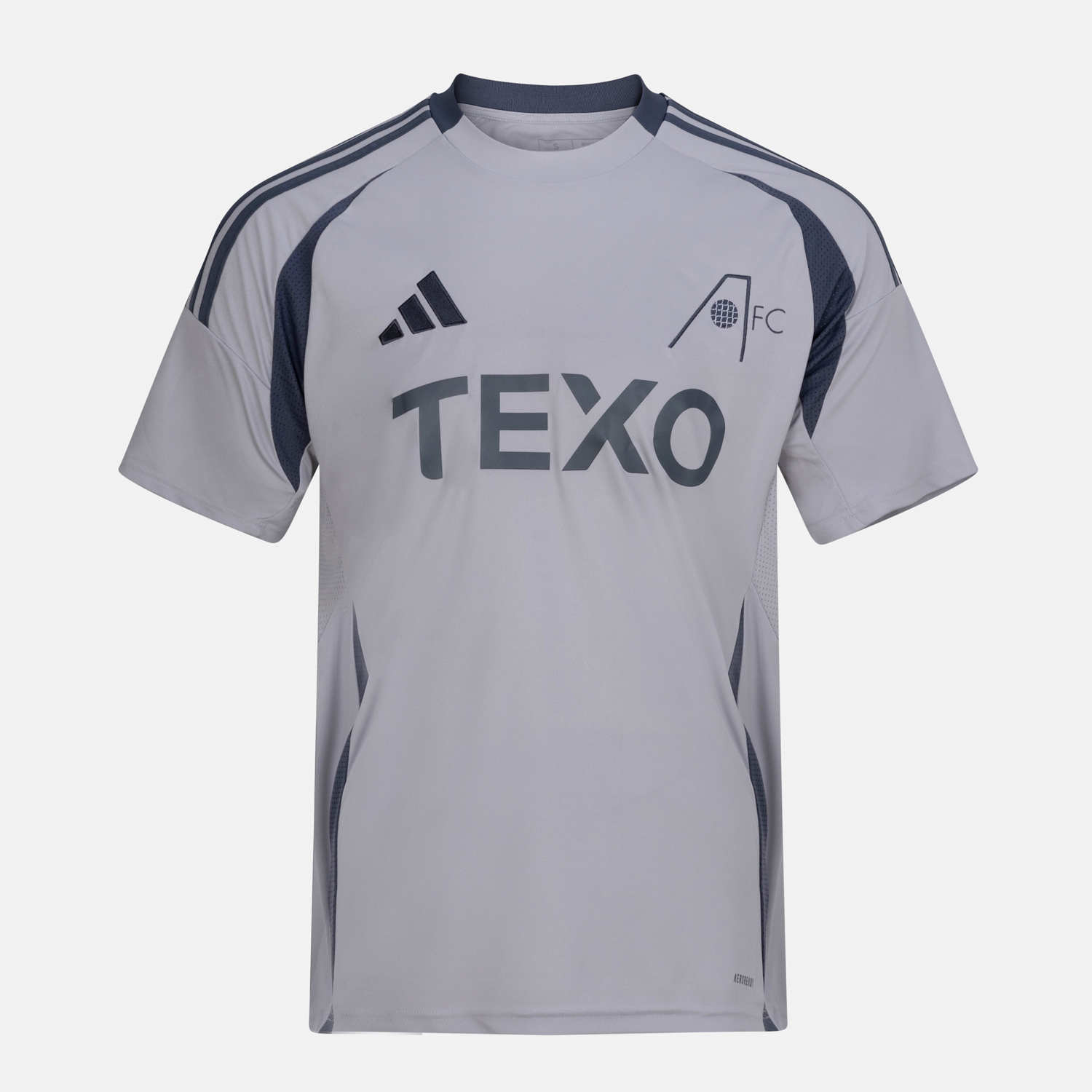 The full kit includes matching grey shorts and socks, both featuring contrasting adidas logos and the Aberdeen crest.