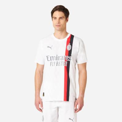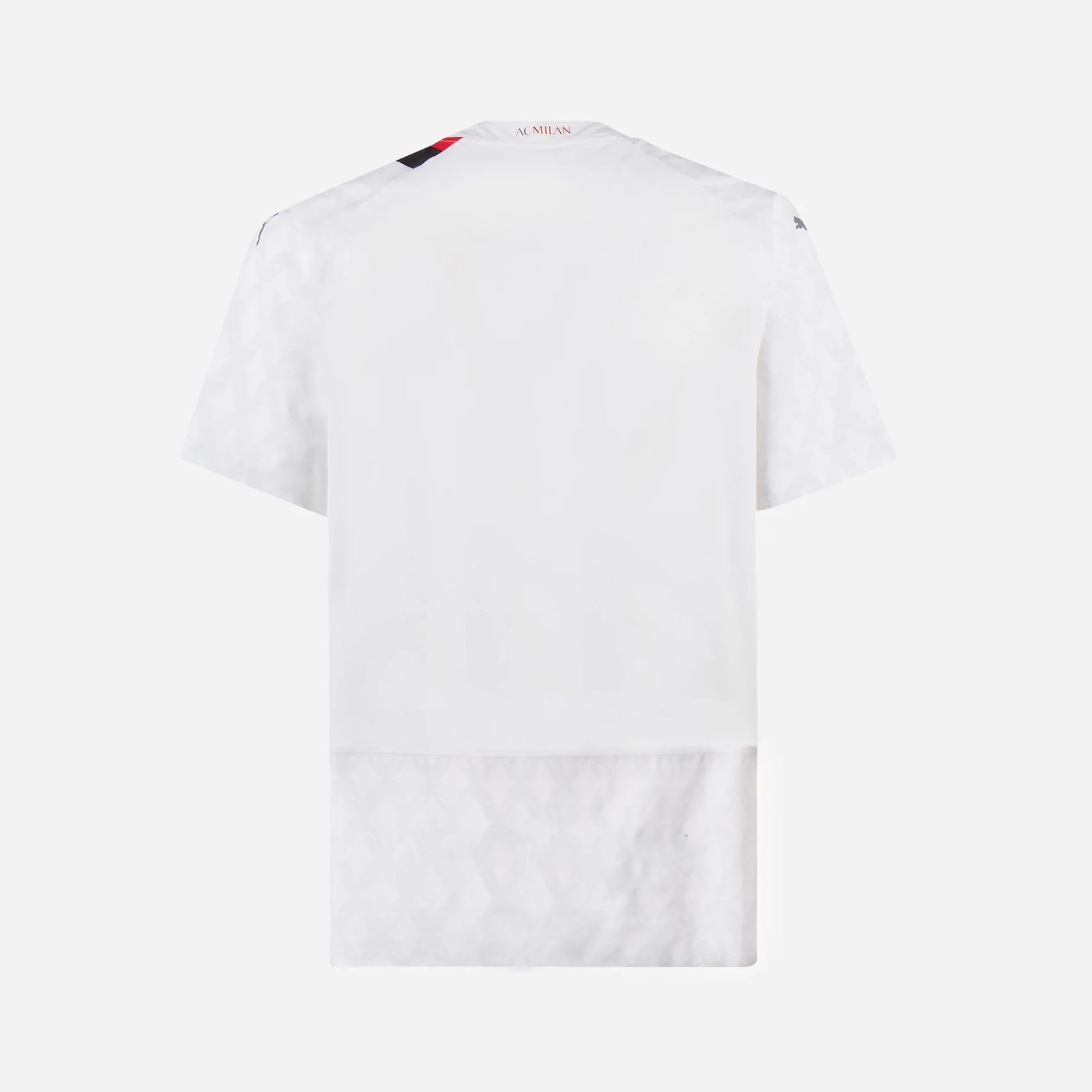 This season, AC Milan and PUMA present a stylish reinterpretation of the renowned Away jersey, incorporating distinct elements from the AC Milan crest into a captivating all-over pattern inspired by the fashion houses of Milan and traditional fashion motifs.