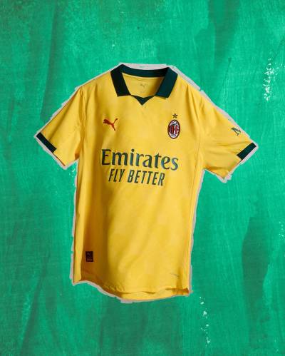 The shirt comes in a Sunny Yellow colour with Dark Myrtle (green) detailing, inspired by Milan’s connection to design and fashion.