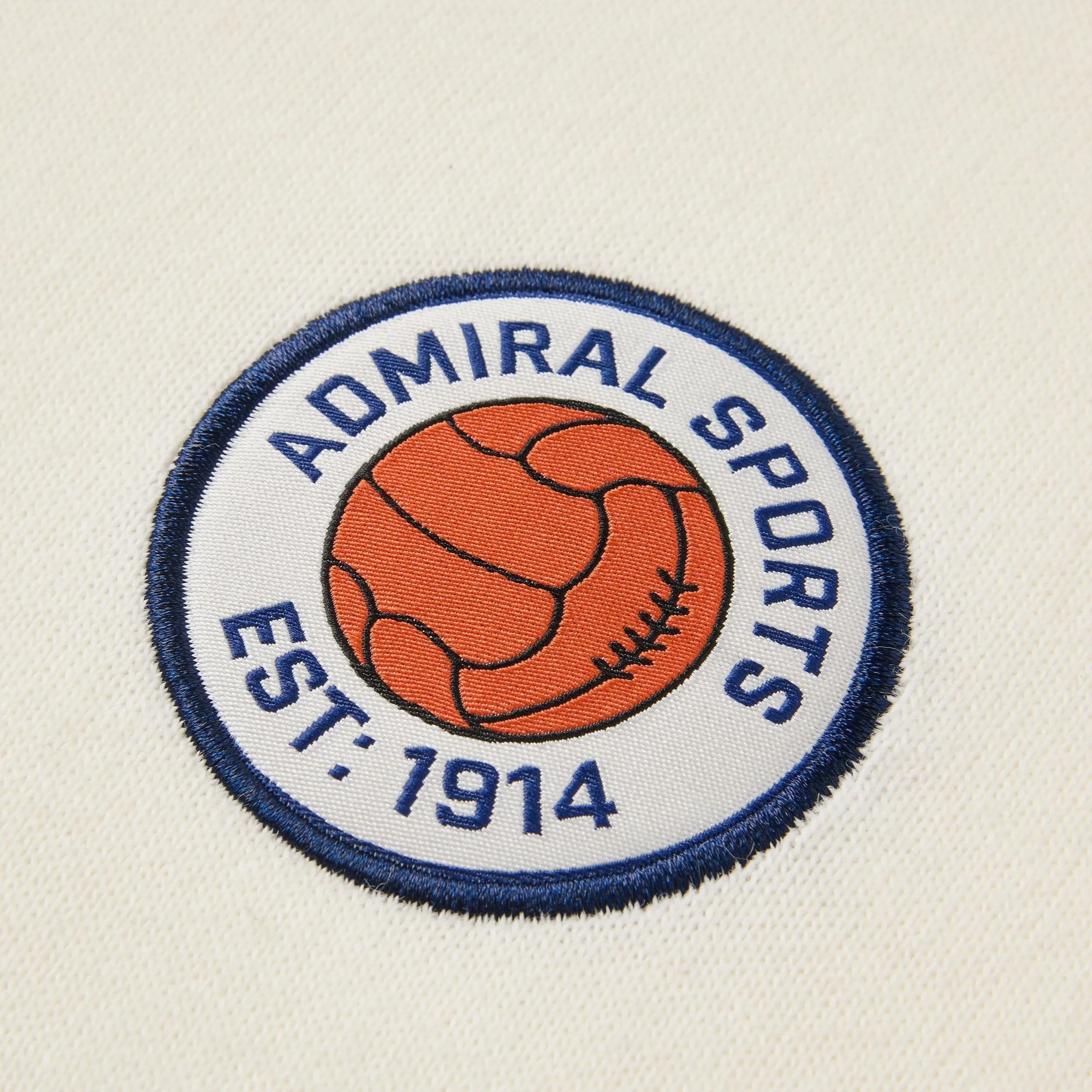 On the chest, the jersey features a woven Admiral logo alongside a circular Admiral Sports crest with “EST. 1914” detailing, nodding to the brand’s history. Centrally placed, the stitched “ADMIRAL 1914” graphic adds further emphasis to the archival theme, presented in a raised embroidered finish.