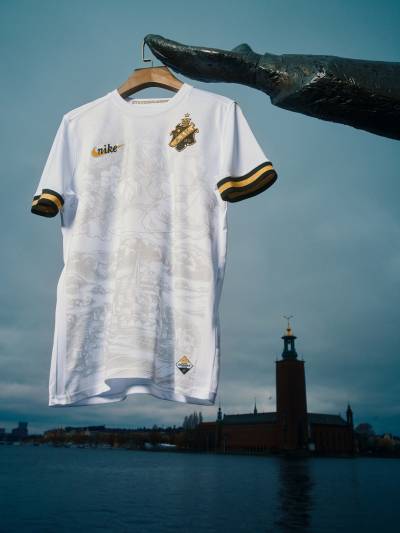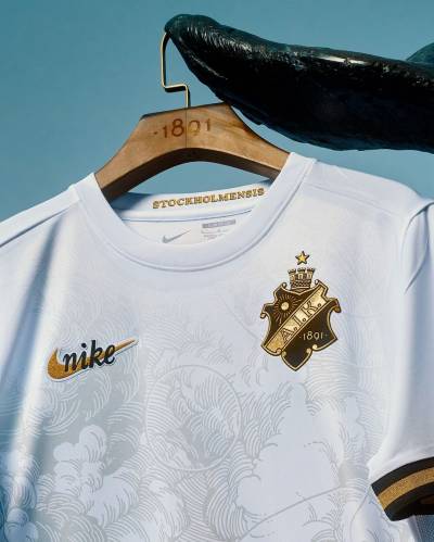 The new Nike release, the proceeds of sales of which will go to the Stadium Sports Camp endeavour, is in white with a sublimated version of the Vädersolstavlan painting that depicts AIK’s Stockholm home.