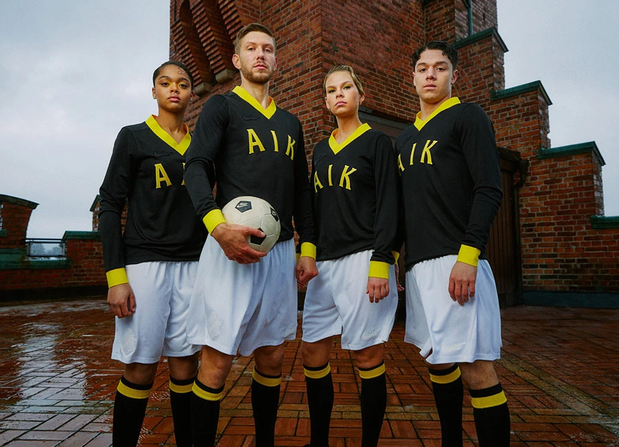 The Solna, Stockholm-based side have revealed this 2024 retro black limited-edition release - sales proceeds of which are being donated to the Stadium Sports Camp initiative - to celebrate the 100th birthday/100th anniversary/centenary of Sweden’s Allsvenskan league, with which AIK enjoy a symbiotic relationship.
