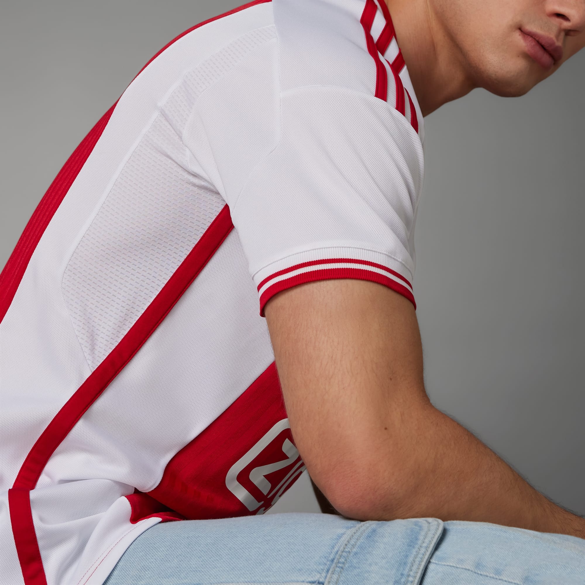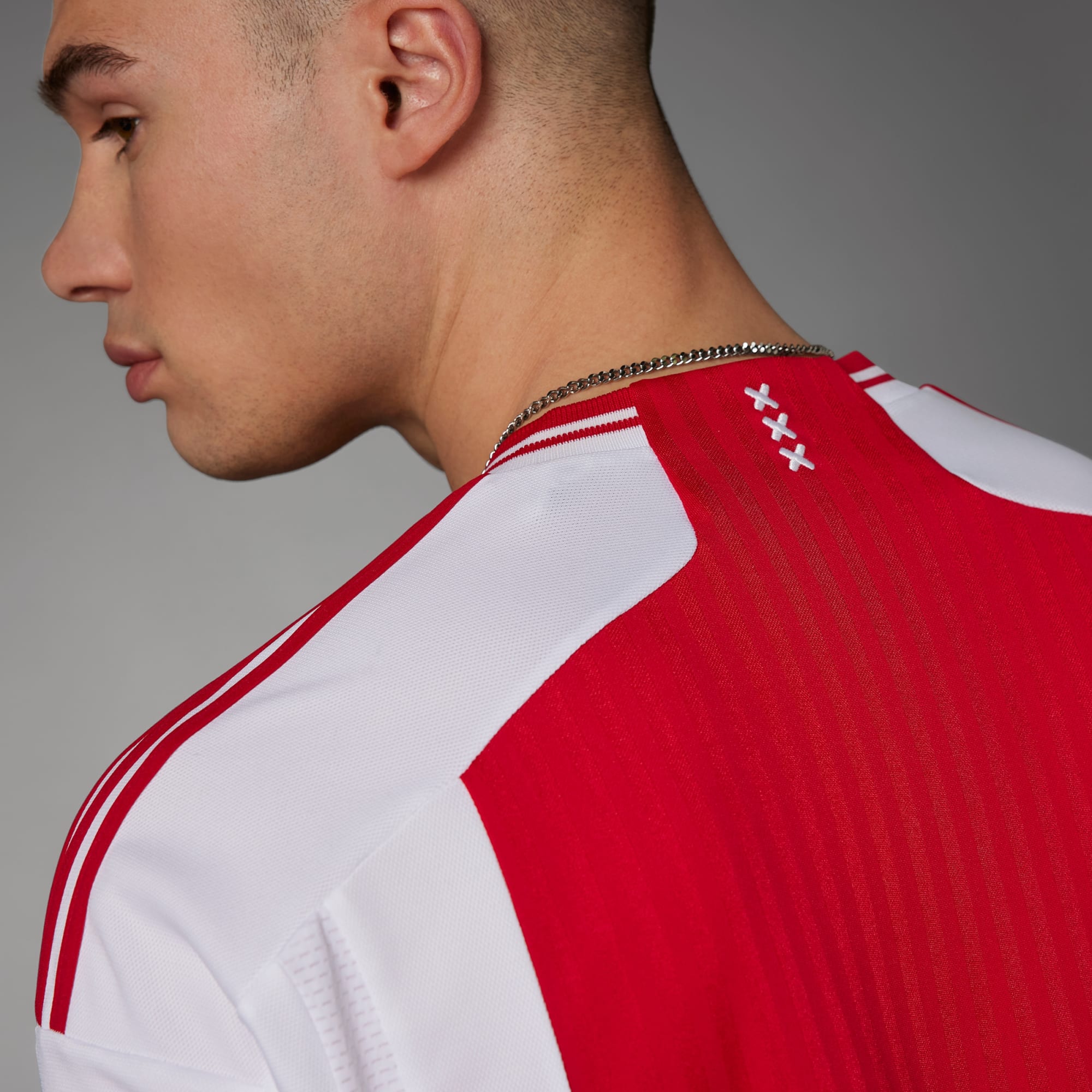 The shirt showcases a modern update to the iconic vertical red strip, with a pinstripe design adorning a matte-shiny base. Paying homage to the club's illustrious history, the Ajax crest takes centre stage on the jersey, just as it did when it first debuted in the early 70s.