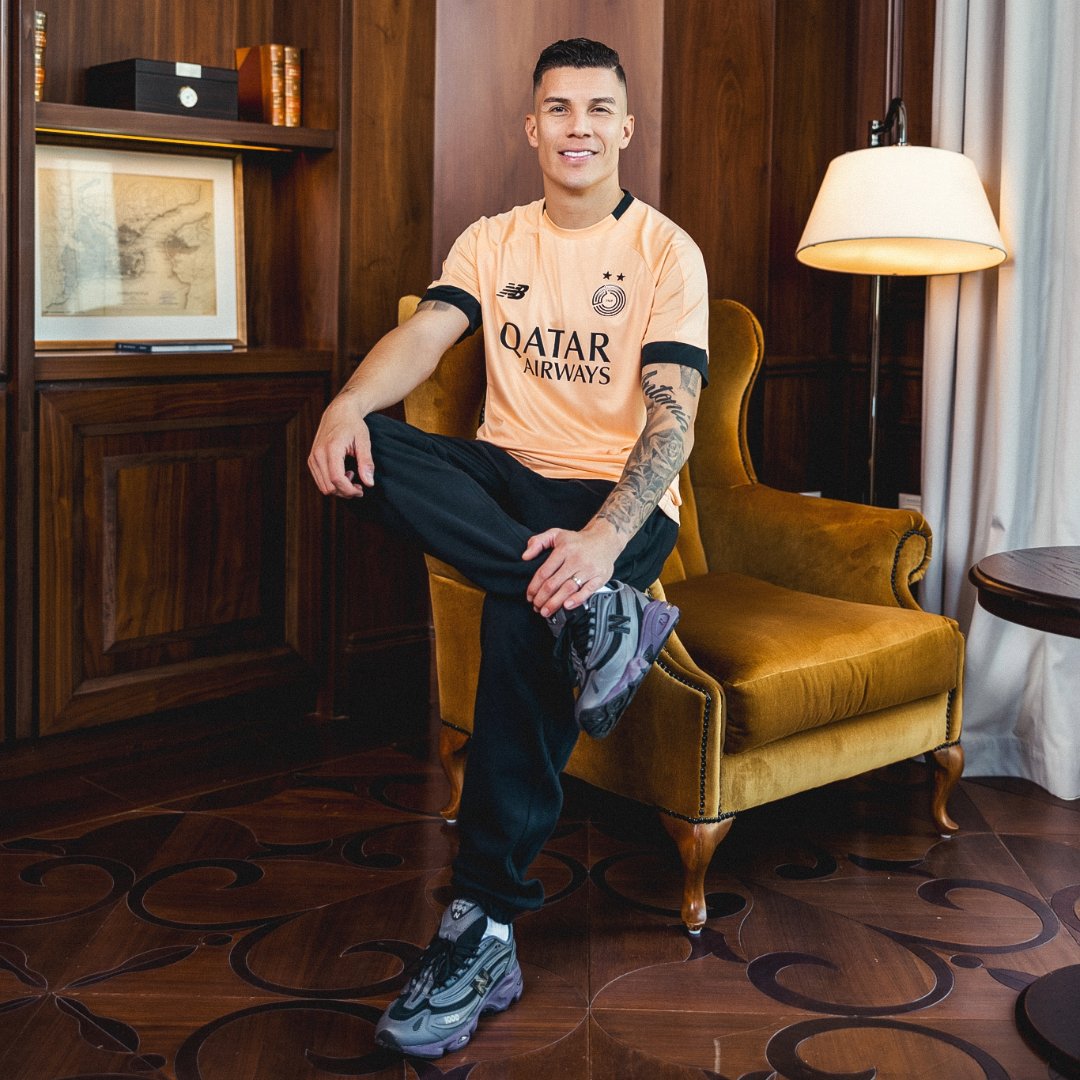 The peach-coloured New Balance 2024-25 secondary-change release is embellished with black trim and detailing - including the crest, the Qatar Airways sponsorship logo, the “NB” supplier’s branding, the sleeve cuffs and a portion of the neck, and the nodding-to-the-club-nickname howling wolf’s head on the upper back.