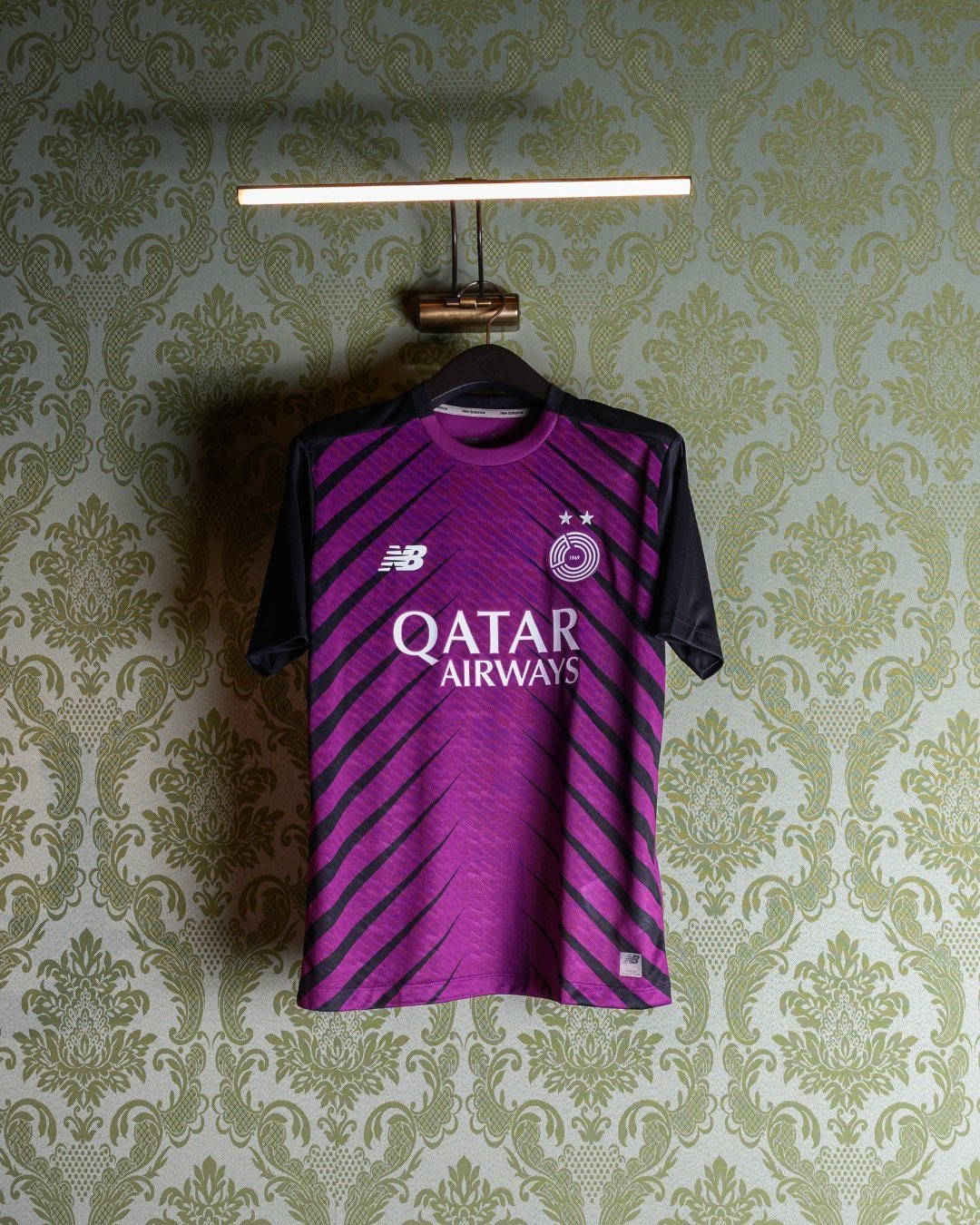 Al Sadd SC have unveiled their New Balance third kit for the 2025/26 Qatar Stars League season, featuring a purple base with black sleeves and a diagonal stripe effect across the front.
